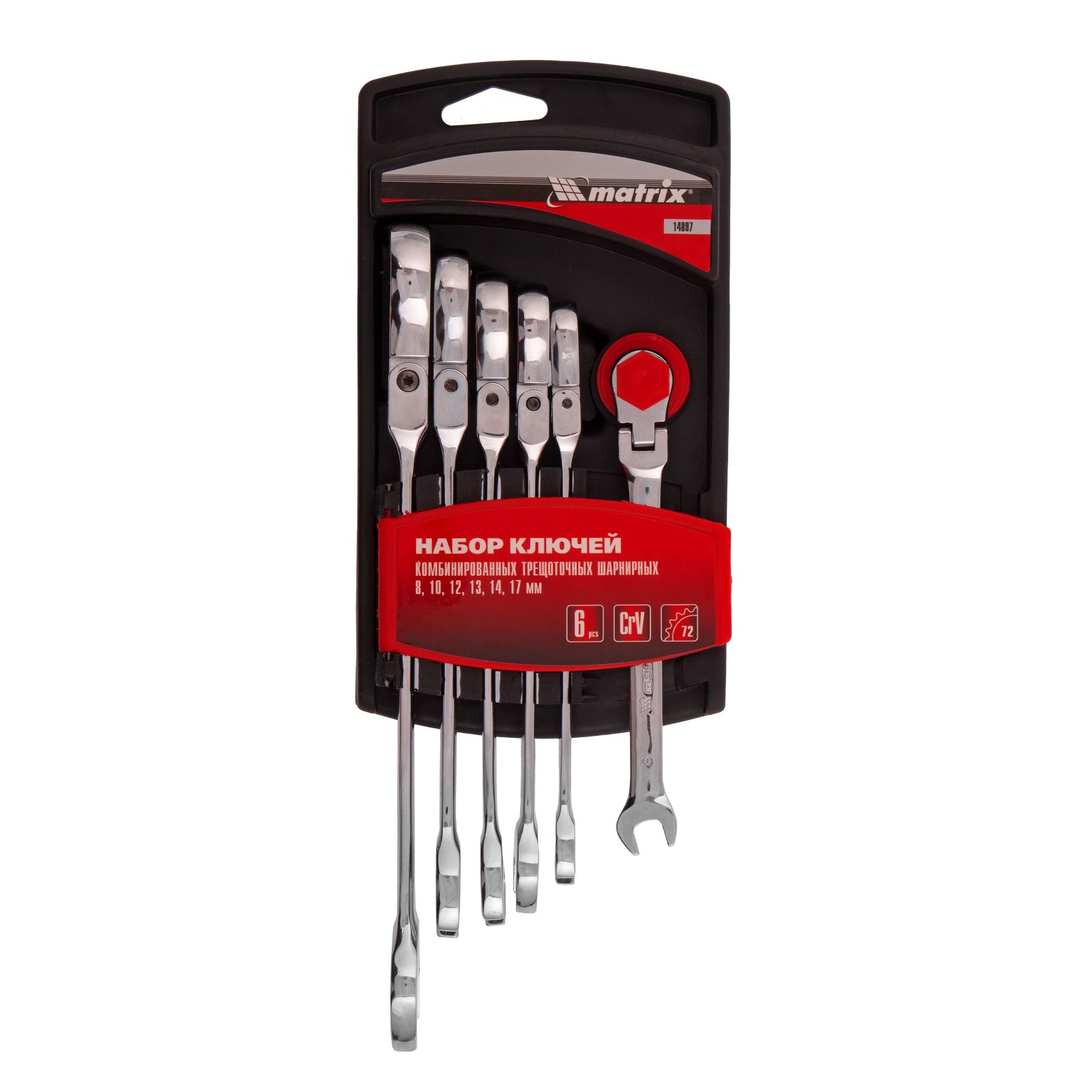 Набор ключей комбинированных трещоточных шарнирных - 6 шт, типоразмеры - 8, 10, 12, 13, 14, 17 |