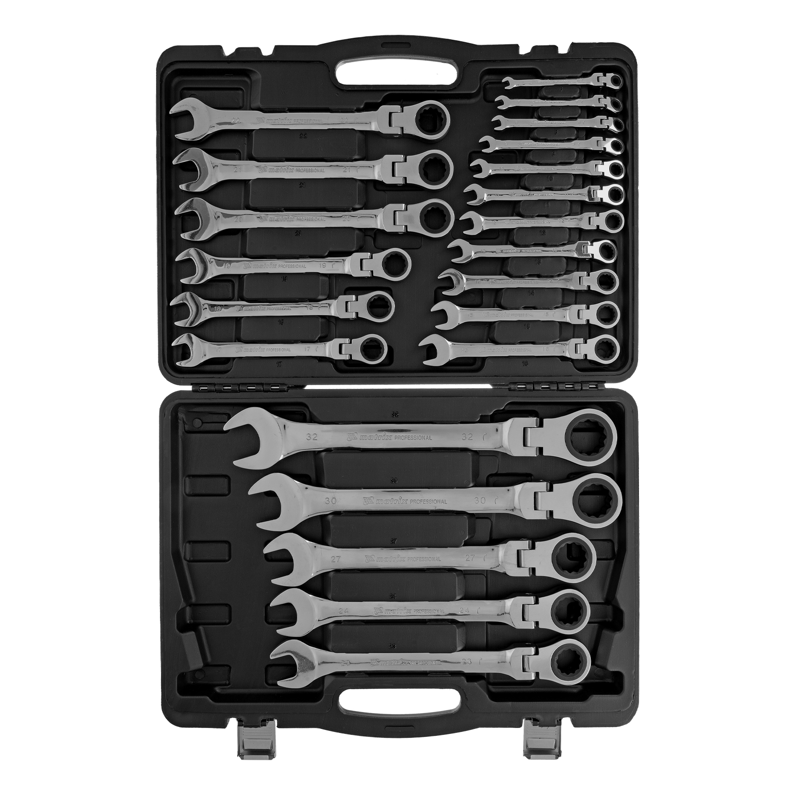 Набор ключей комбинированных, трещоточных шарнирных 22 шт. Matrix в Уфе