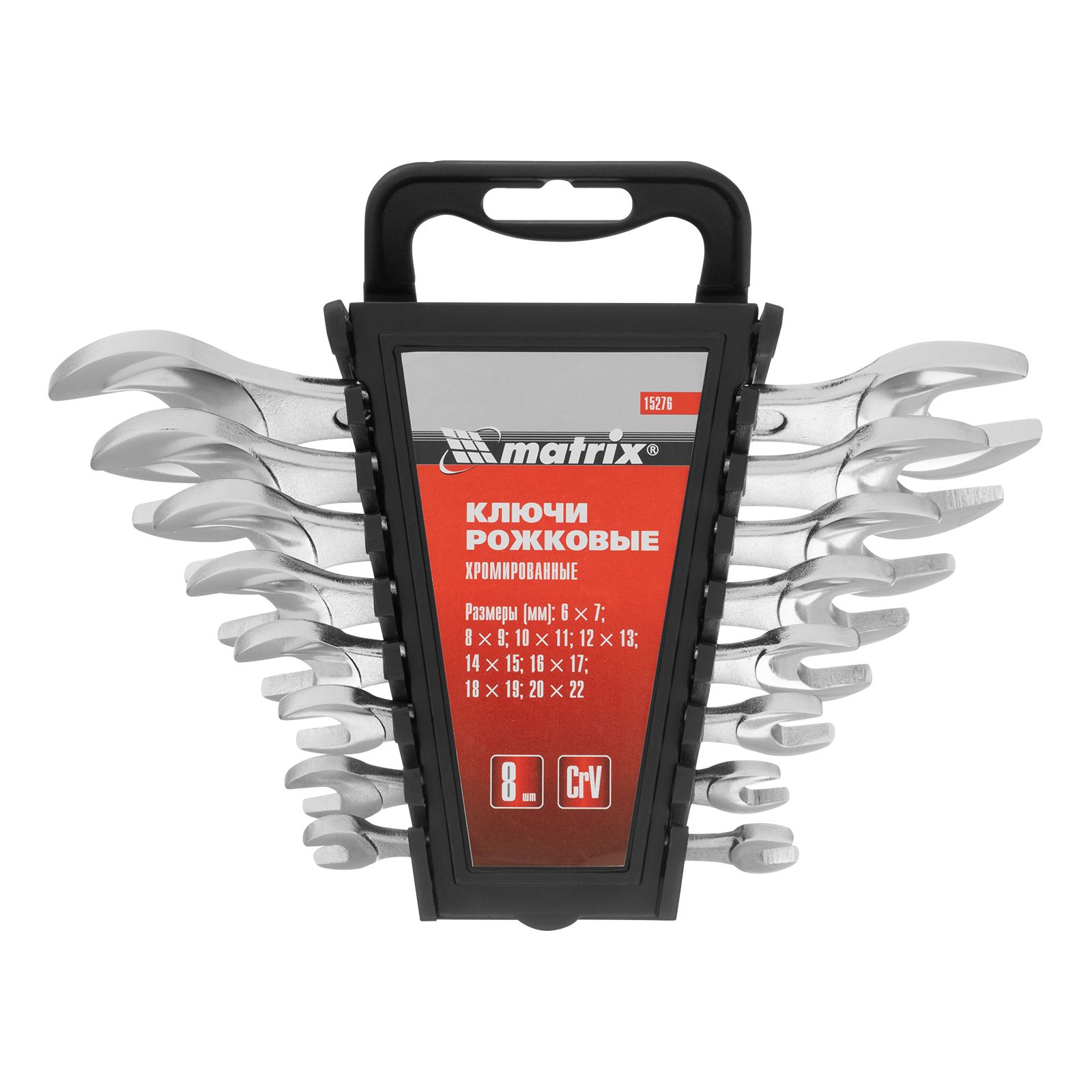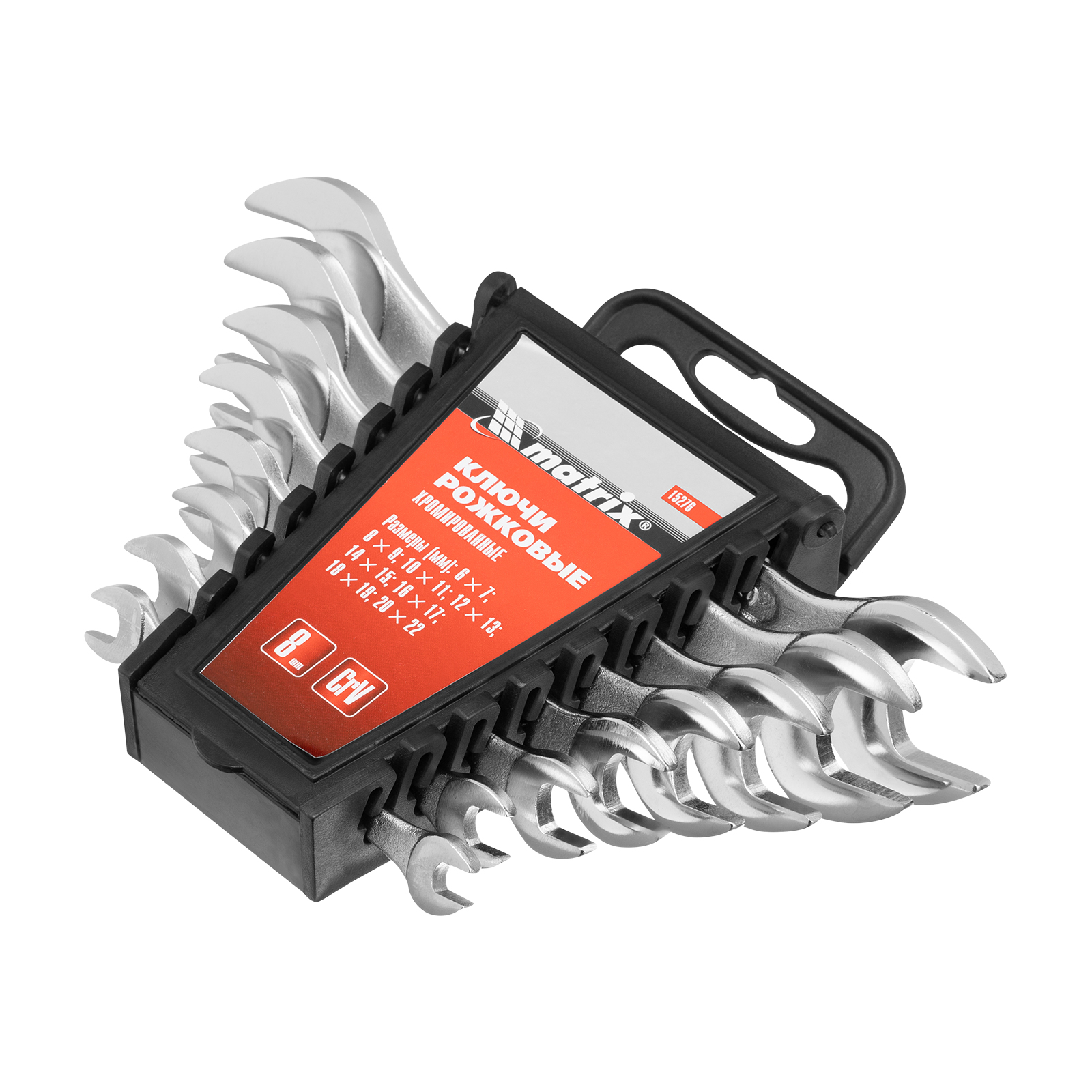Набор ключей рожковых, 6-22 мм, 8 шт, CrV, хромированные Matrix в Уфе
