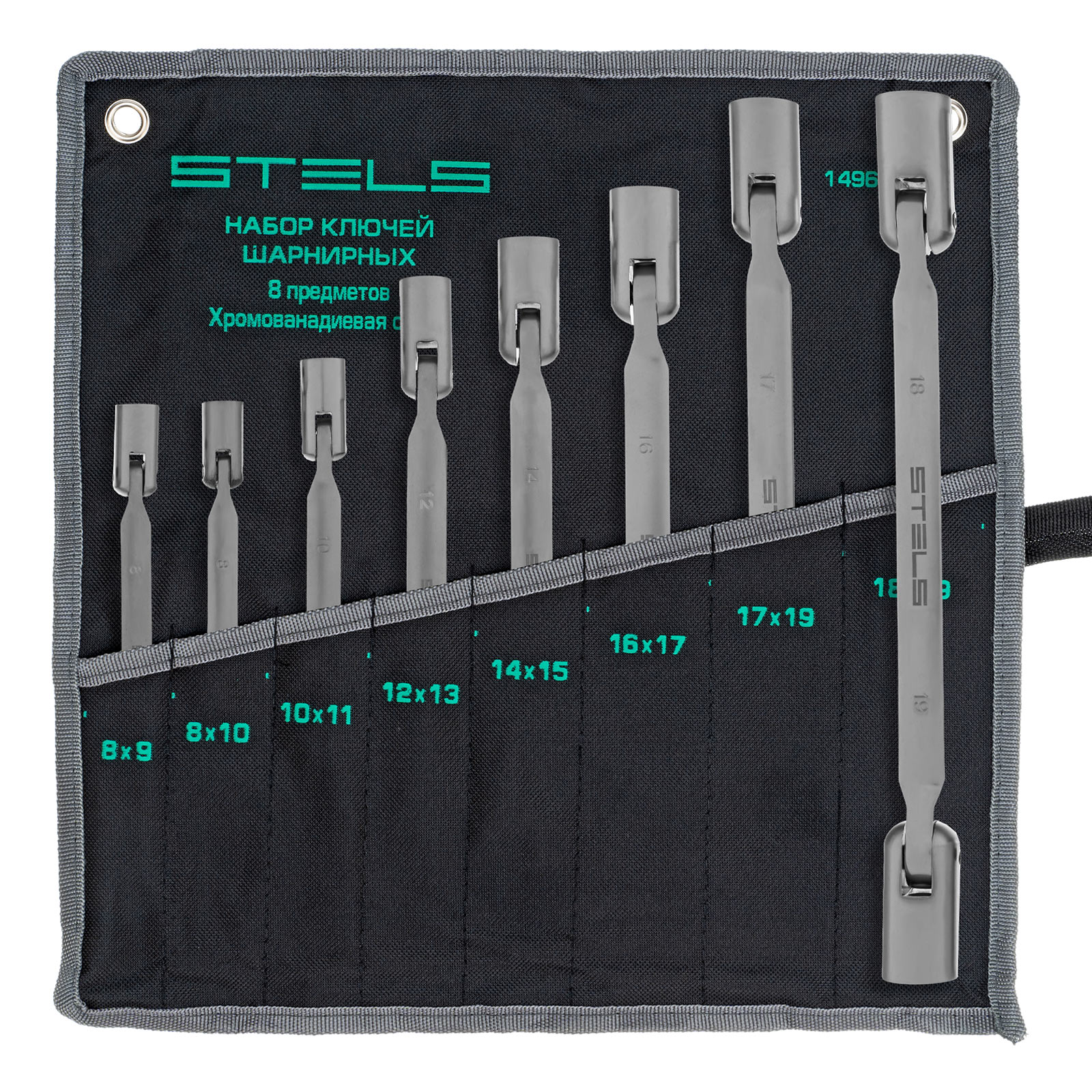Набор Stels 14965 состоит из 8 шарнирных ключей, изготовленных из стали CrV, с головками размером от 8 до 19 мм, с 12-гранными профилями, и предназначен для работы с болтовыми и гаечными соединениями. Ключи обеспечивают плотный обхват крепежа и удобны для работы в стесненных условиях — величина хода составляет всего 30°. Ключи используются для ремонта автомобилей и других слесарно-монтажных работ.