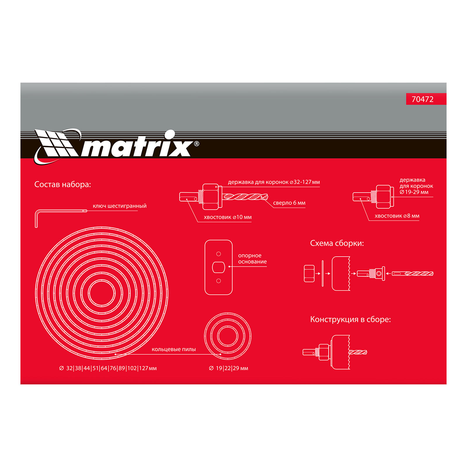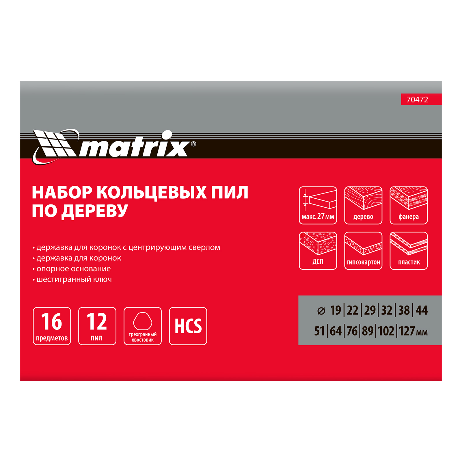 Набор кольцевых пил по дереву, 19-127 мм, 12 предметов Matrix в Уфе