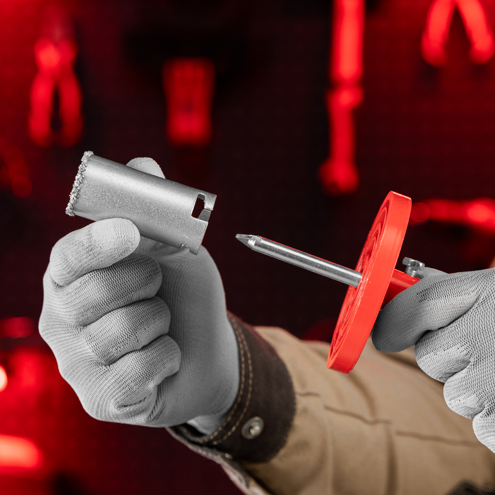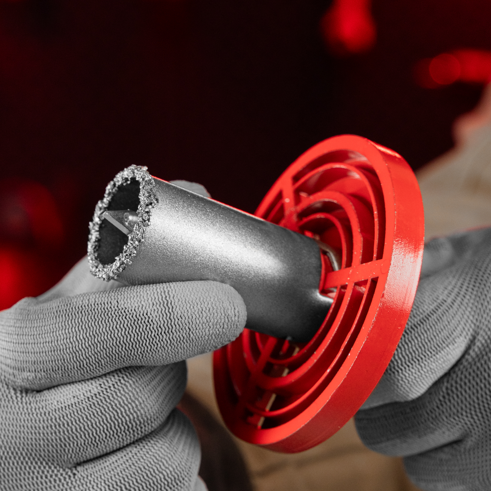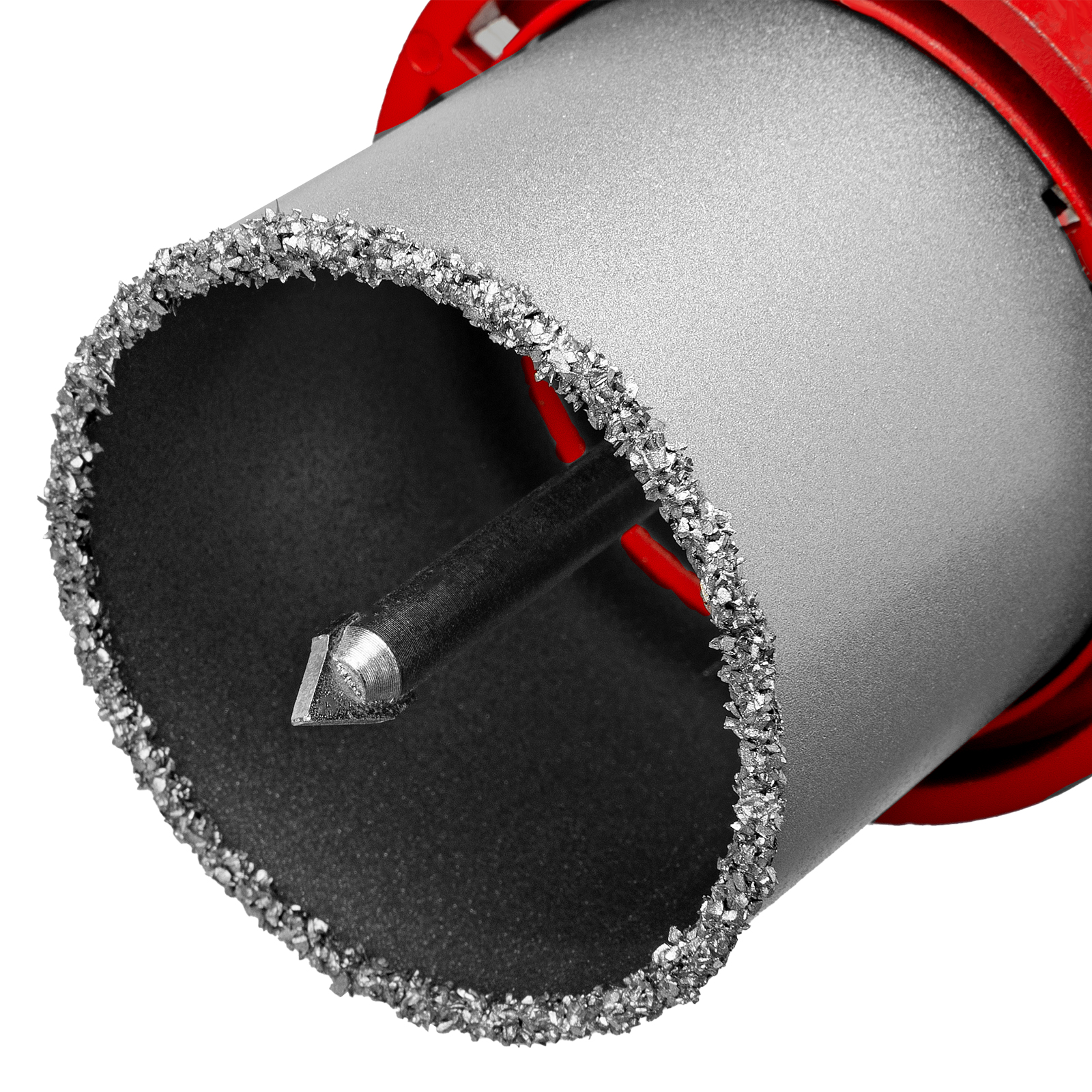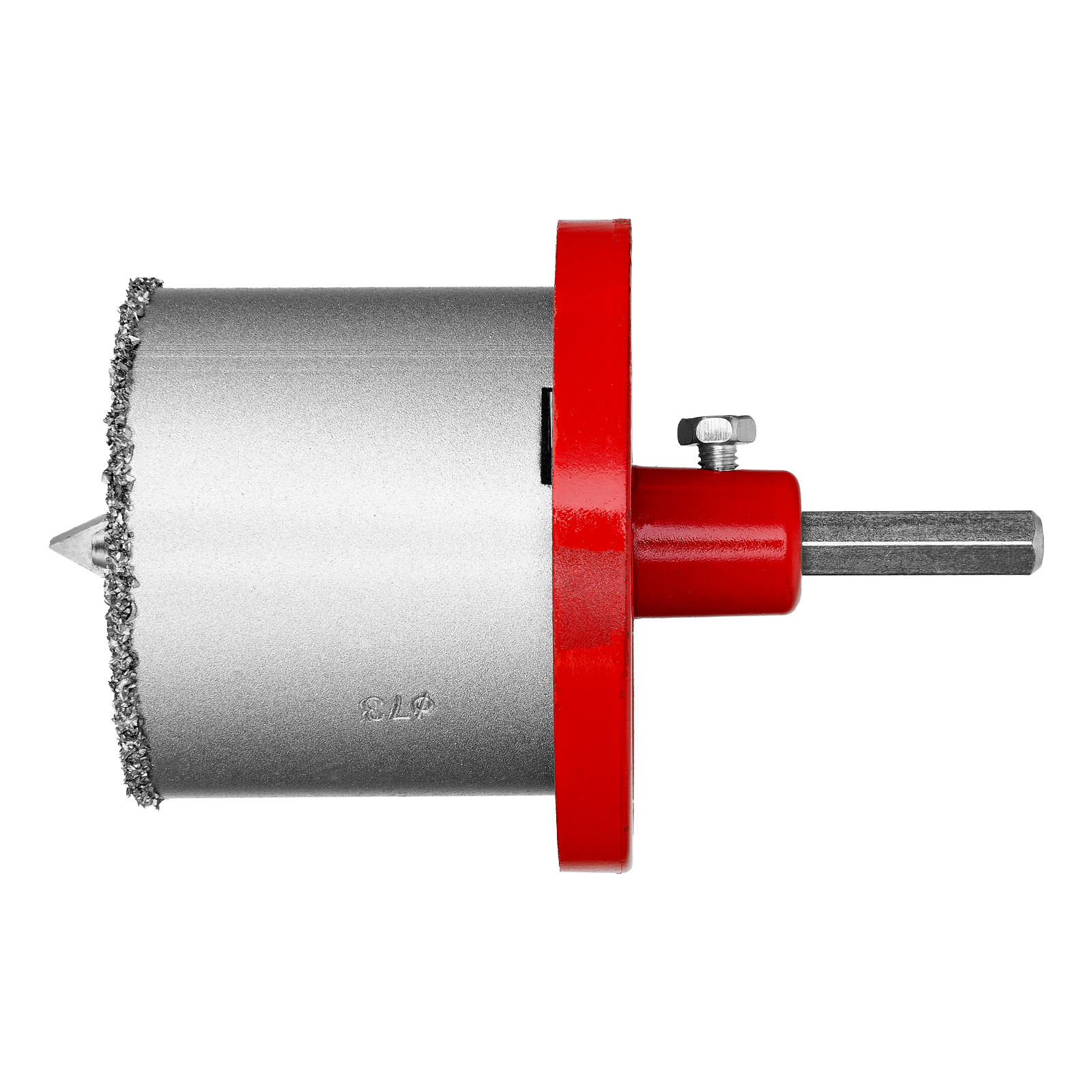 - Широкие возможности — в комплект входят коронки диаметром 33, 53, 67, 73 мм для сверления отверстий разного диаметра.