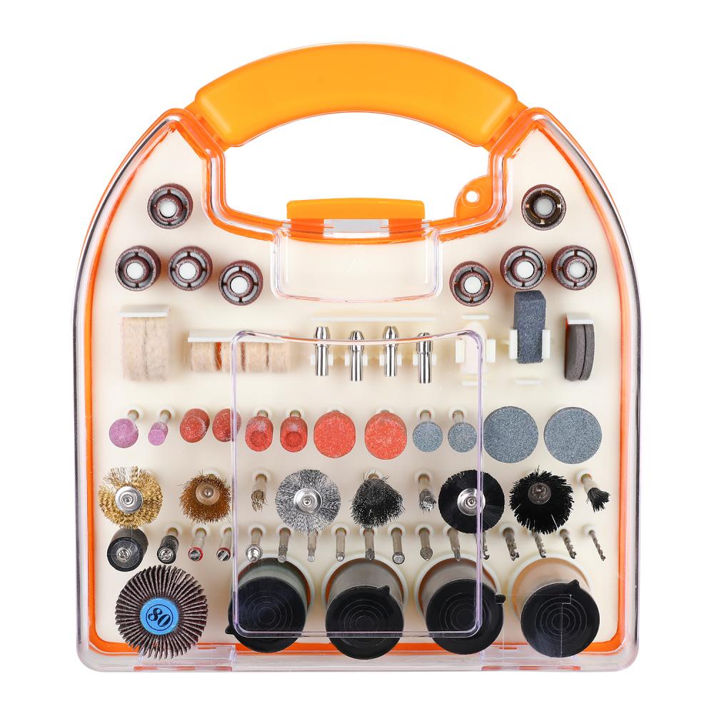 Набор насадок для гравера DEKO DH172 (172 предмета) в кейсе применяется для чистовой обработки различных материалов. Комплектующие:1/4"Шлифовальная лента 8шт1/2"Шлифовальная лента 8шт1"Войлочные прокладки 2шт1/2"Войлочные прокладки 4штЦанга 4штШлифовальный войлок 1штОселок для правки с маслом 1штРезиновый наждачный диск 2штМалый цилиндр Sander 2штЦилиндр Сандер 6штБарабан 4штСтальная щетка из нержавеющей стали 3штЩетка 3штЛатунная кисть Зшт1/2"Шлифовальная оправа 1шт1/4"Шлифовальная оправа 1штОправка для резки колес 2штСтопорный штифт для шлифовального фетра 1штАлмазные насадки 7штПрецизионная насадка 5штОткидной диск 1штПолироль 1 штЧерные отрезные диски 30штКрасные отрезные круги 30штНаждачная бумага 42шт