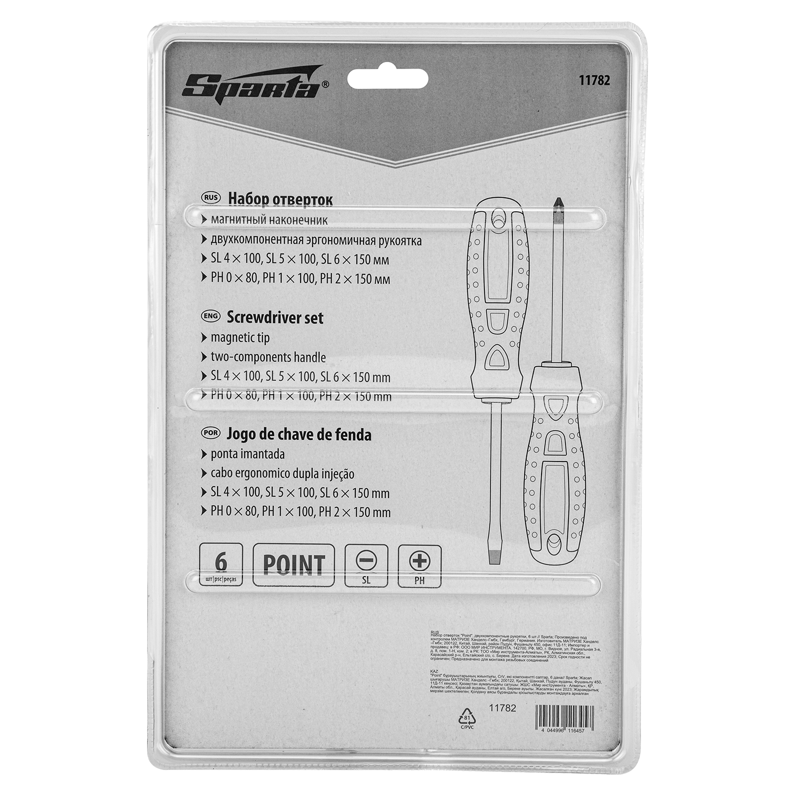 Набор отверток "Point", CrV, двухкомпонентные рукоятки, 6 шт, Sparta в Уфе