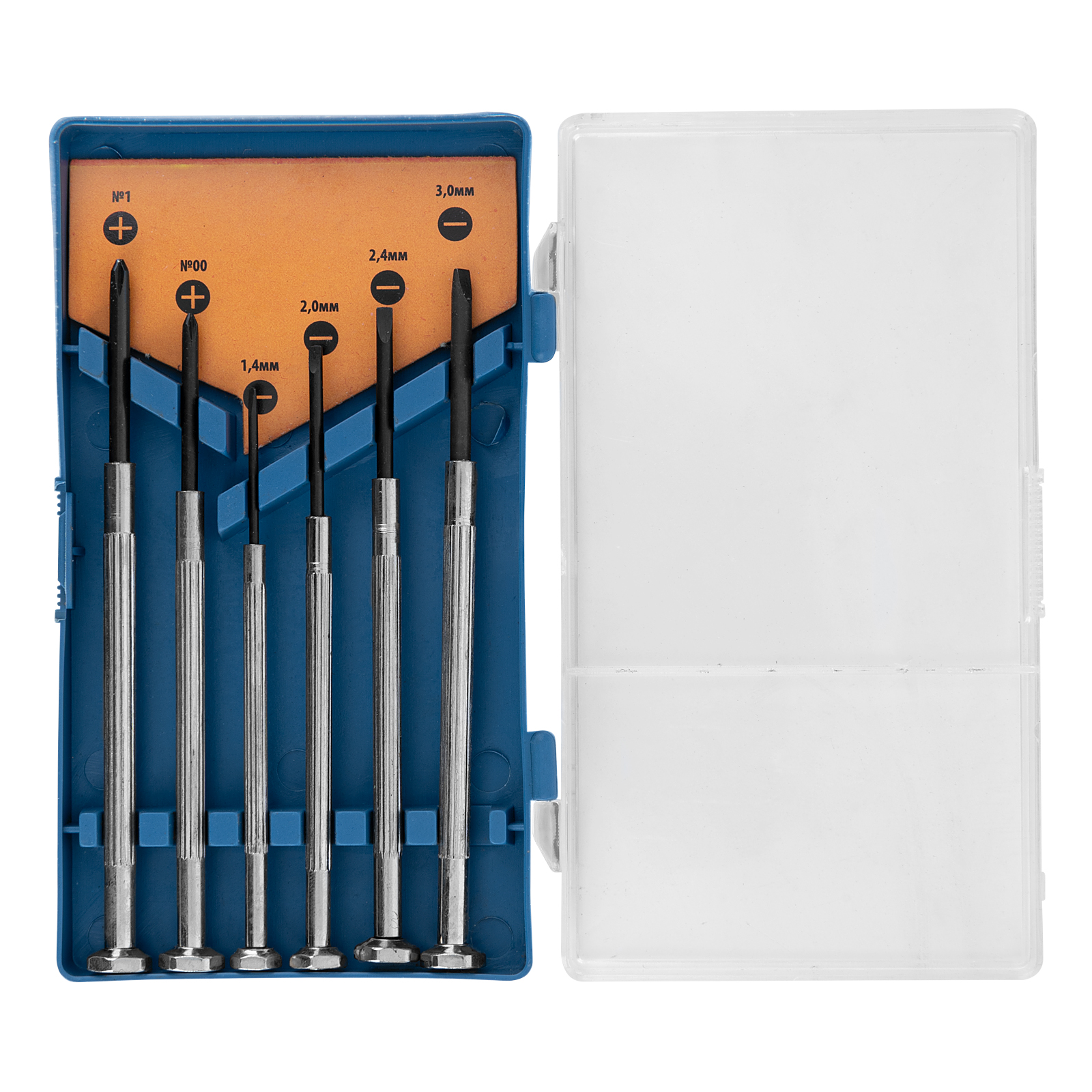 Отвертки для точных работ: РН1, РН00, SL14, SL2, SL24, SL3 - 6 штПластиковый кейс - 1 шт |