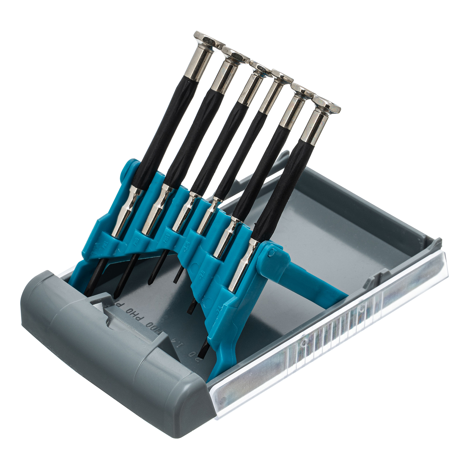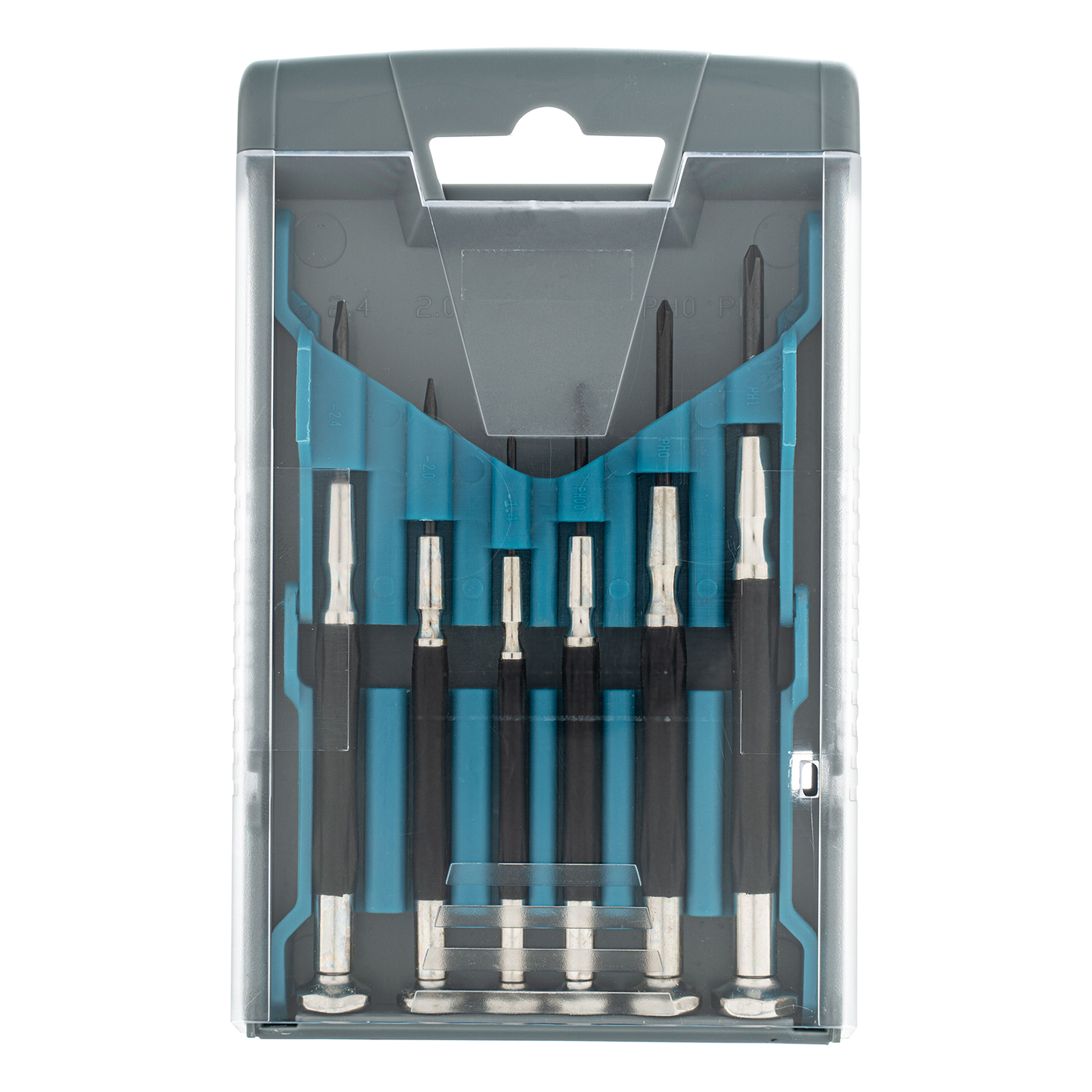Отвертки для точных работ:РН1, РН0, РН00, SL1.4, SL2, SL2.4 - 6 штПластиковый кейс - 1 шт |