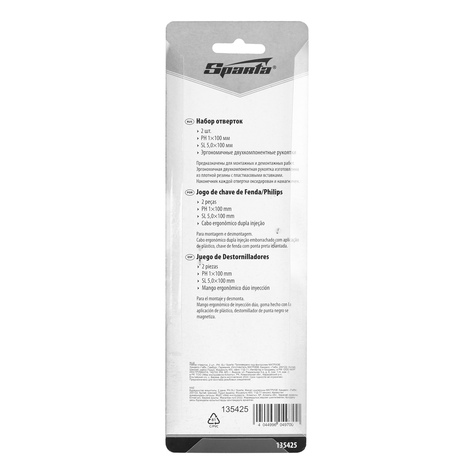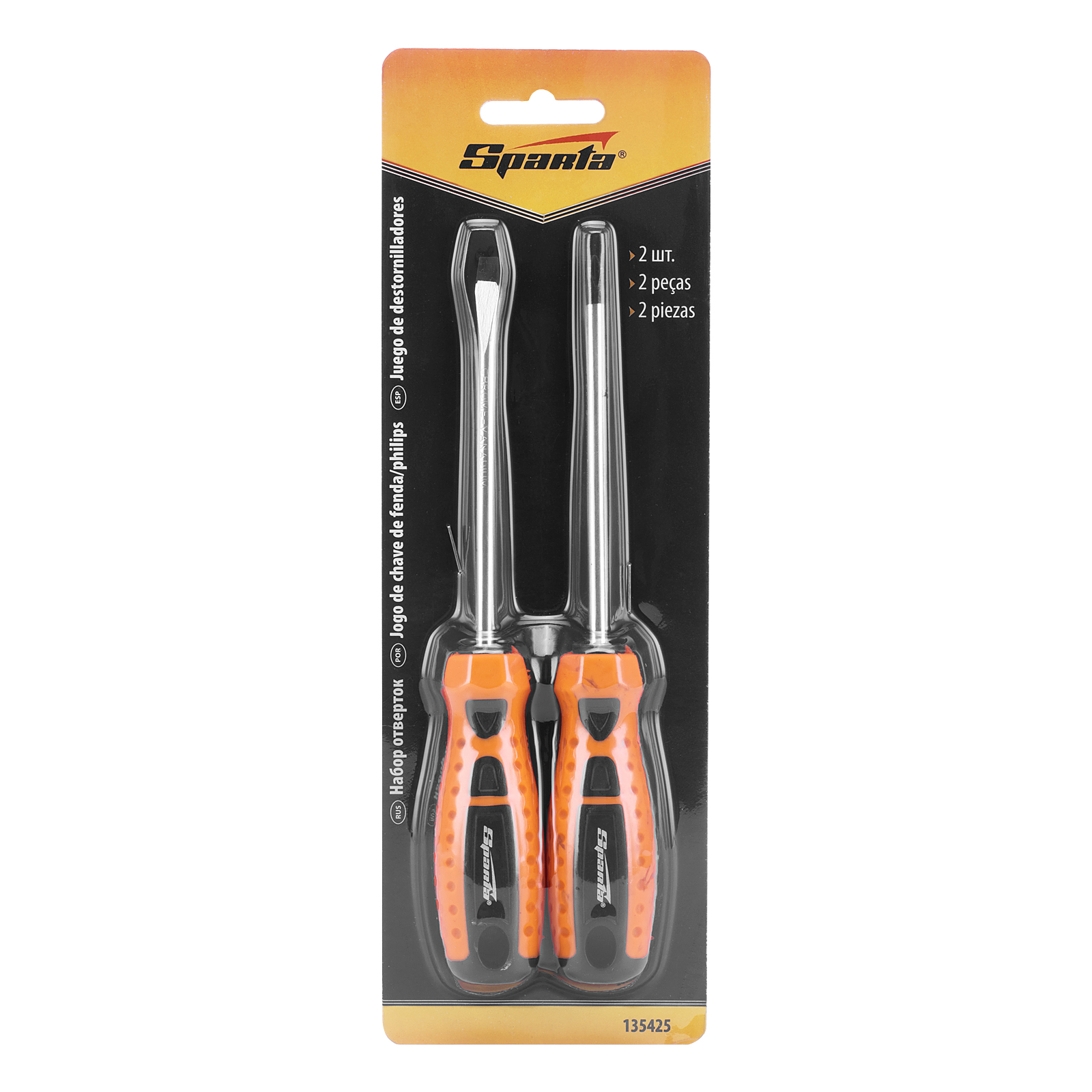 Набор отверток Sparta 135425 из 2 шт., со шлицами PH и SL, предназначен для откручивания и закручивания резьбового крепежа. Входящие в комплект поставки инструменты подходят для работы с самыми распространенными шлицами. Набор будет полезен в быту.