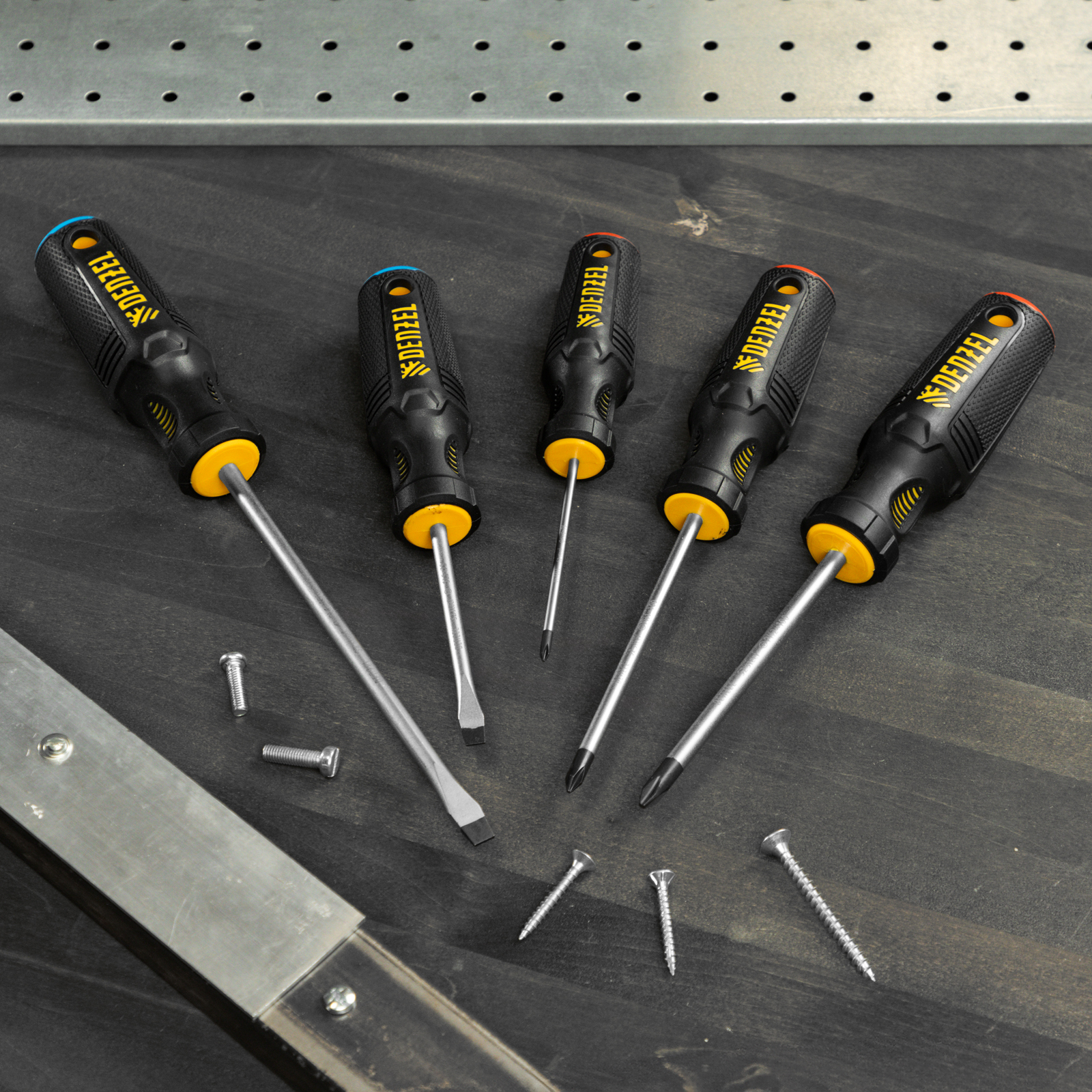 - Удобное хранение — отверстия в рукоятках позволяют подвешивать отвертки на крючок или скобу.