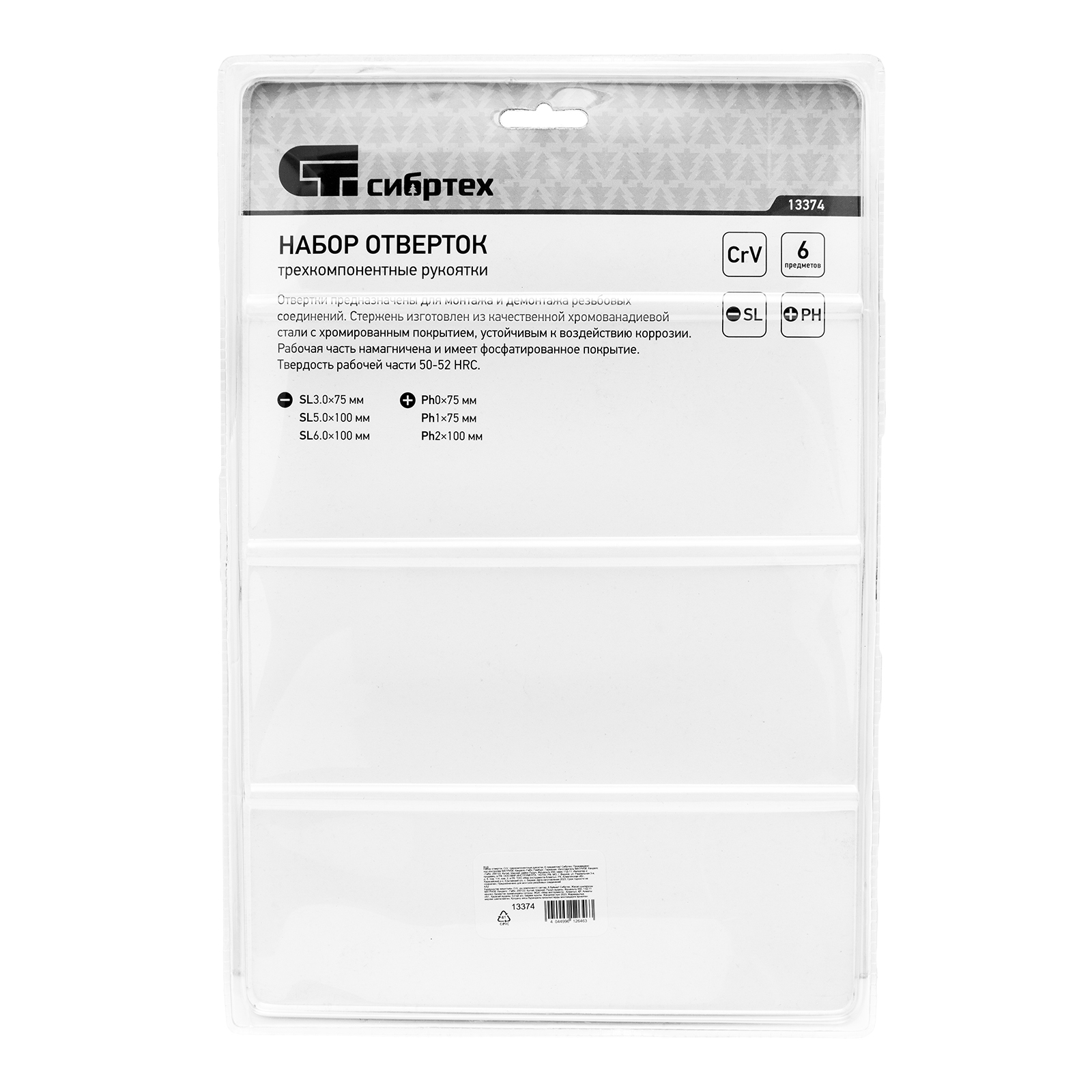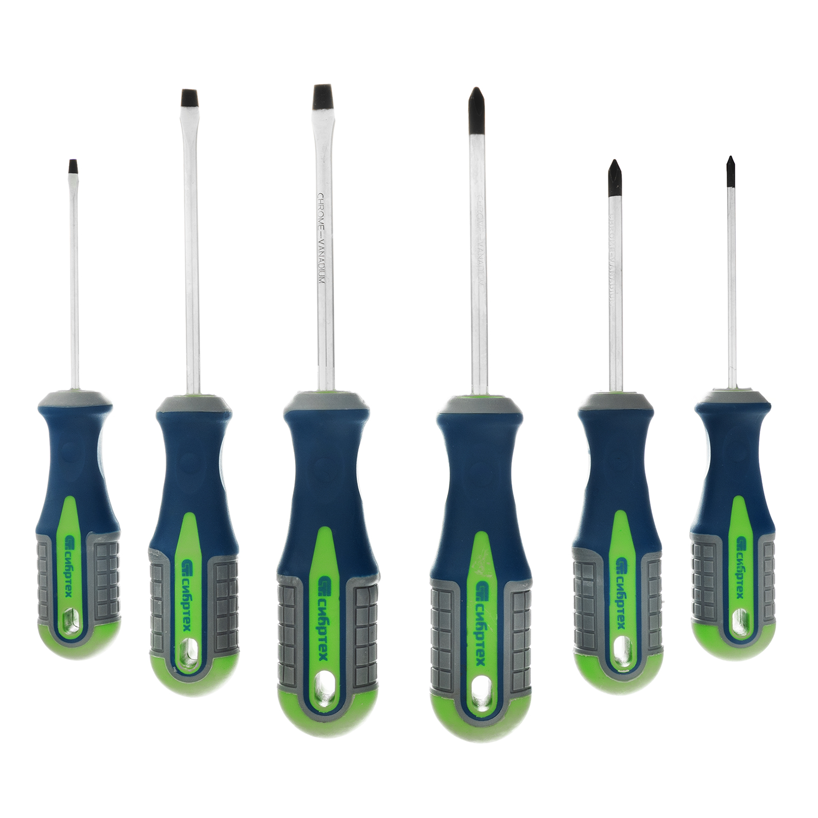 Набор отверток, CrV, трехкомпонентные рукоятки, 6 предметов Сибртех в Уфе