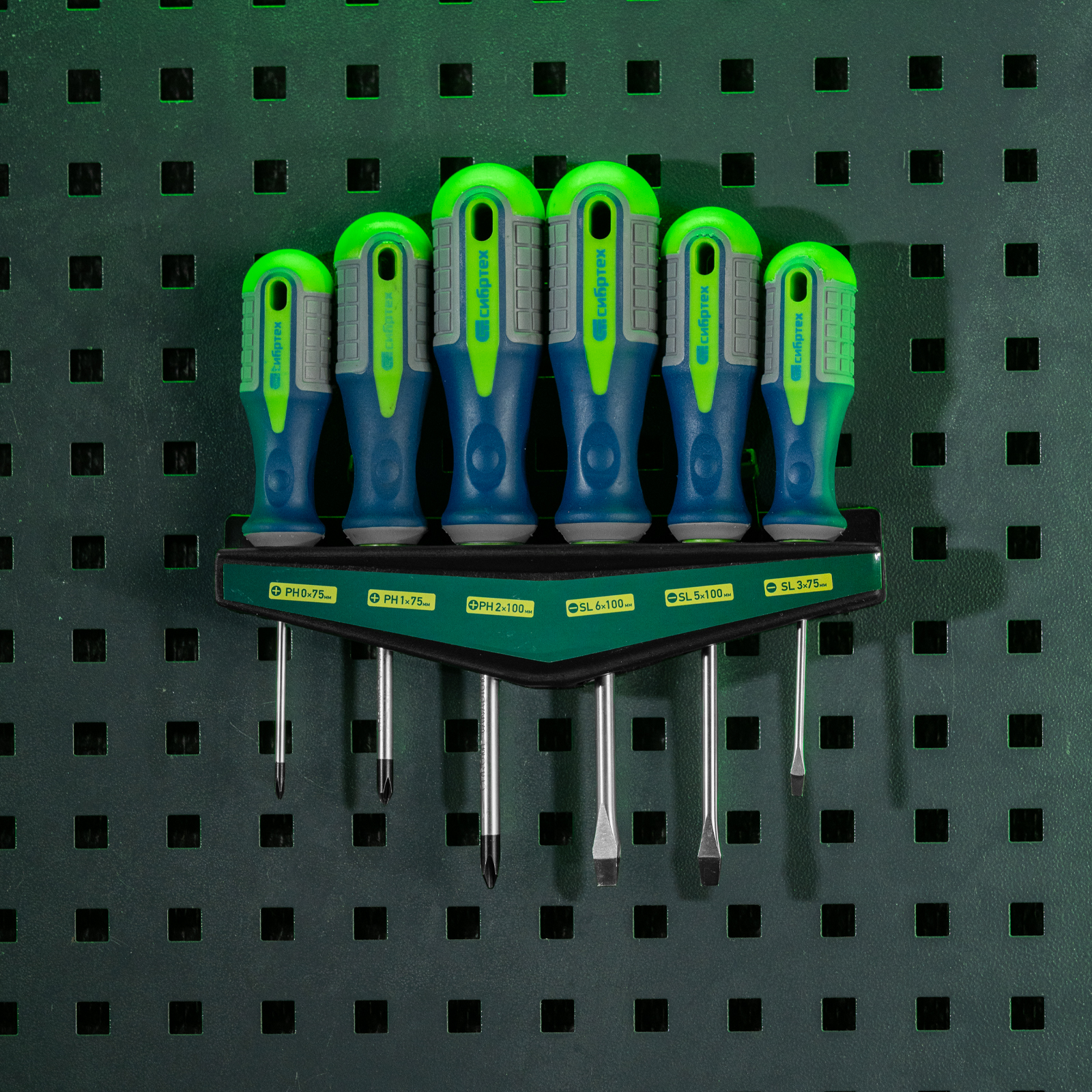 Отвертки: PH0, PH1, PH2, SL3, SL5, SL6 - 6 штПодвесная полка - 1 шт |