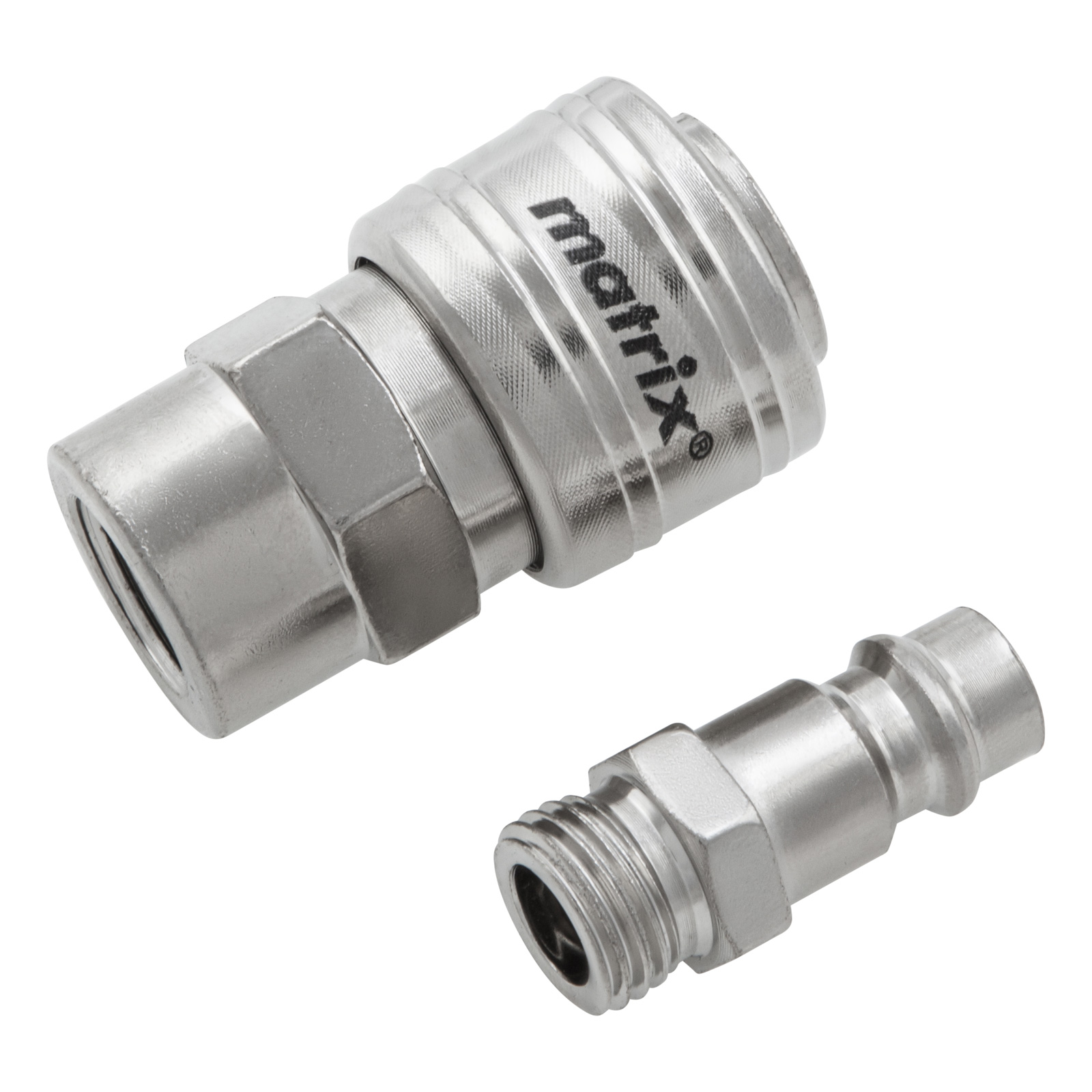 Набор переходников Matrix 57016 обеспечивает подключение элементов пневмосистемы с разным типом крепления. Он позволяет просто перейти с быстросъемного соединения на резьбовое и надежно соединить компрессор с пневматическим инструментом. Набор состоит из двух аксессуаров: ниппеля Rapid (Euro) типа «папа» и муфты Rapid (Euro) типа «мама» с диаметром внутренней резьбы 1/4″.