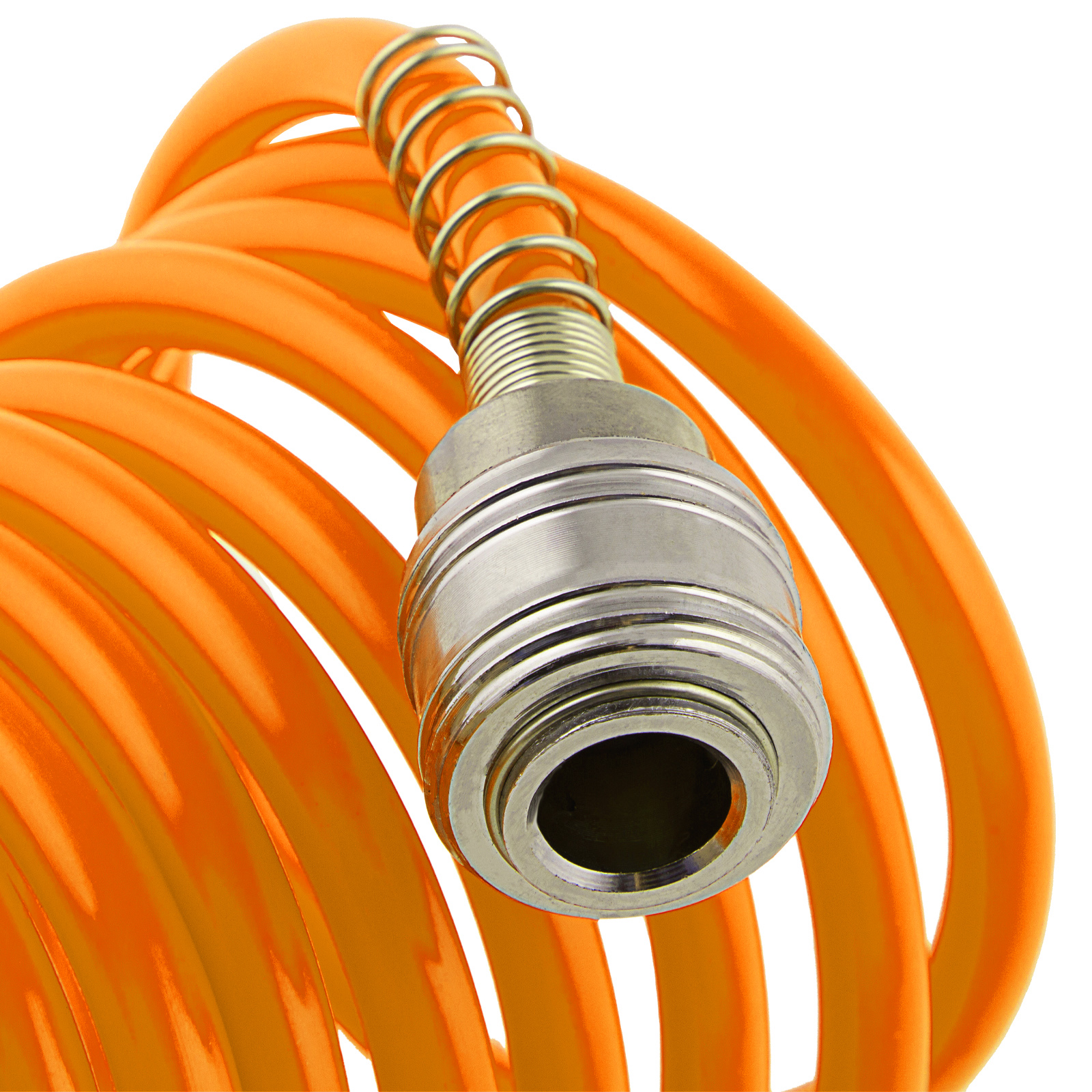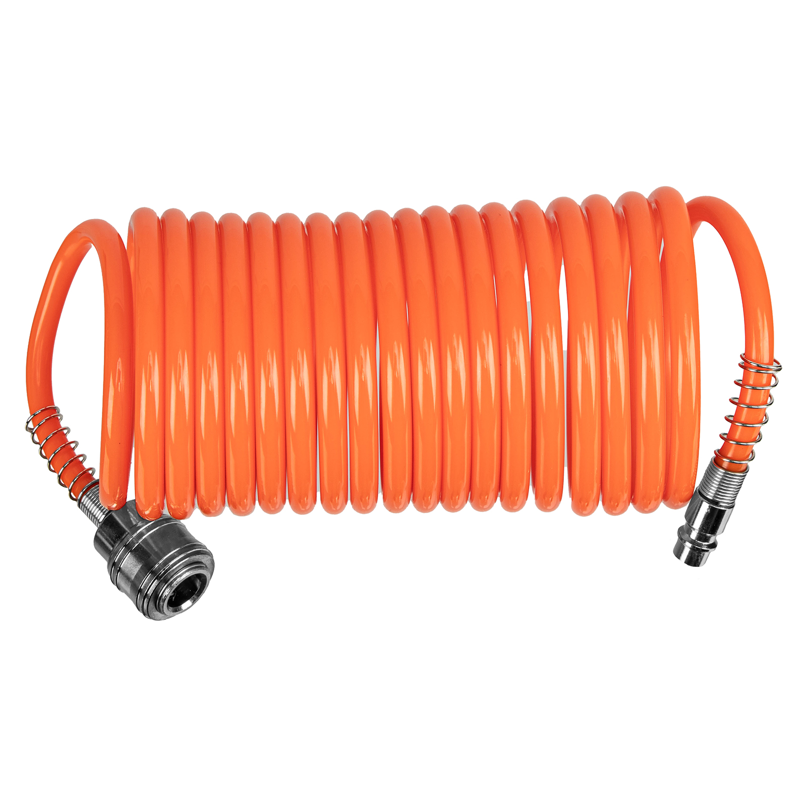 - Удобное использование — спиральный шланг не перегибается и не нуждается в скручивании после окончания работ, а его длины 5 м достаточно для свободного передвижения по рабочей зоне.