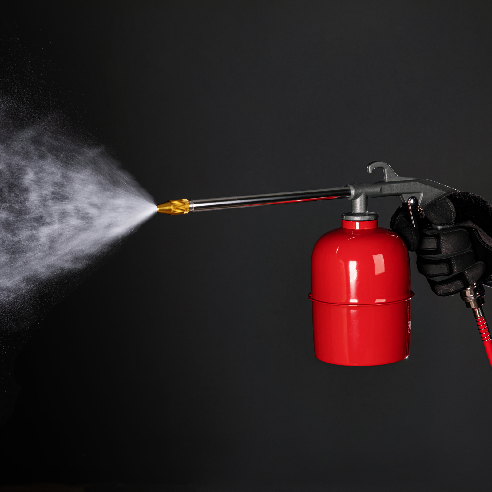 - Прочная и вместительная емкость — стальной бак промывочного пистолета объемом 0,85 л обеспечивает значительный запас жидкости.