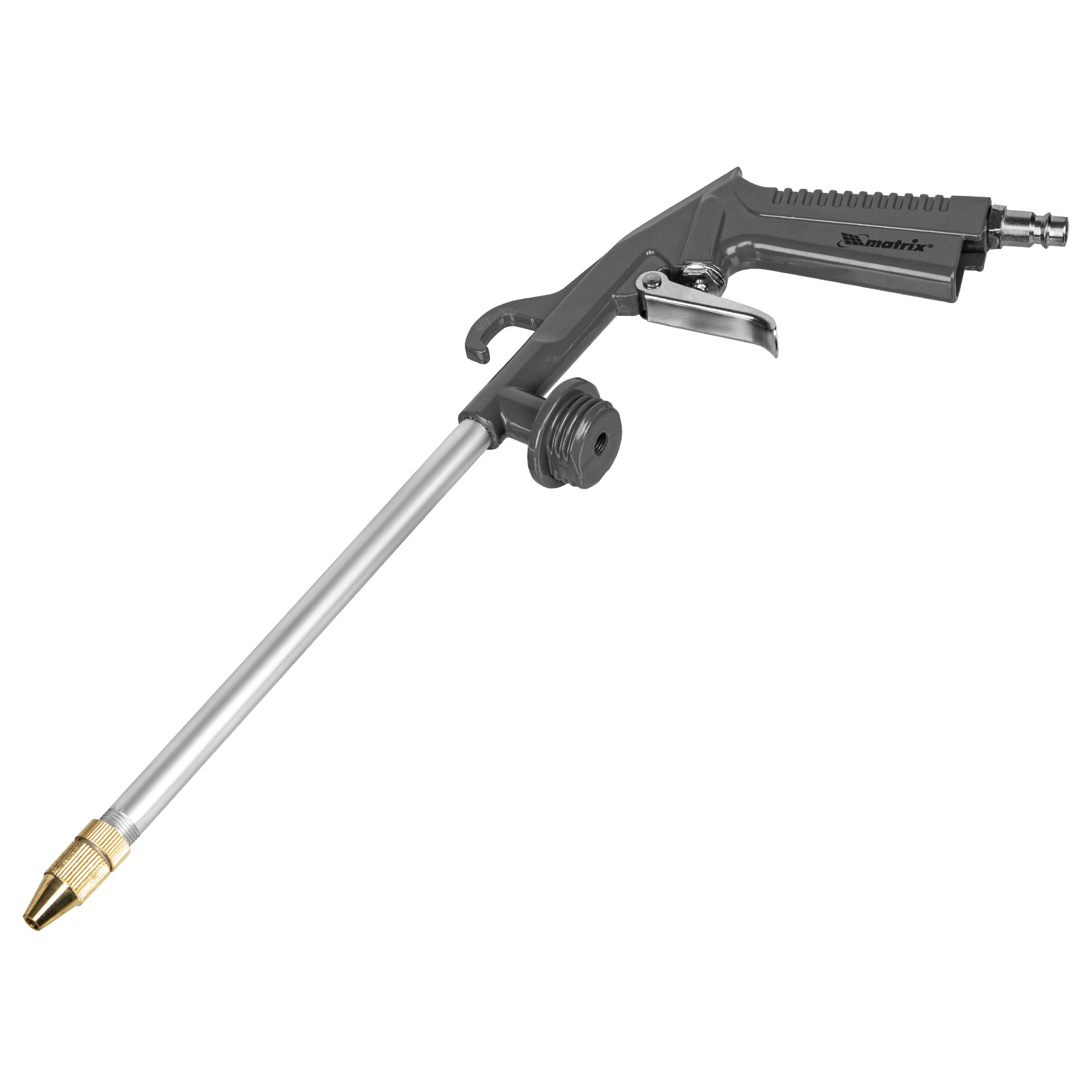 Набор пневмоинструмента Matrix 57302 включает 5 предметов: промывочный пистолет, продувочный пистолет, пневмопистолет для накачки шин, краскораспылитель с нижним бачком и шланг с быстросъемным соединением. Пневмоинструменты совместимы со всеми типами компрессоров. Набор пригодится в автомастерской, на мебельном производстве, в гараже или при проведении ремонта.,С помощью краскораспылителя можно покрасить деревянные, пластиковые или металлические поверхности. Промывочный пистолет предназначен для очистки деталей и инструмента, а также смазки различных поверхностей. Пистолет для подкачки шин позволяет измерить давление в шине и накачать ее. Продувочный пистолет очищает поверхности и детали струей сжатого воздуха, а спиральный шланг служит для подключения пневмоинструмента к компрессору при помощи быстросъемного коннектора.