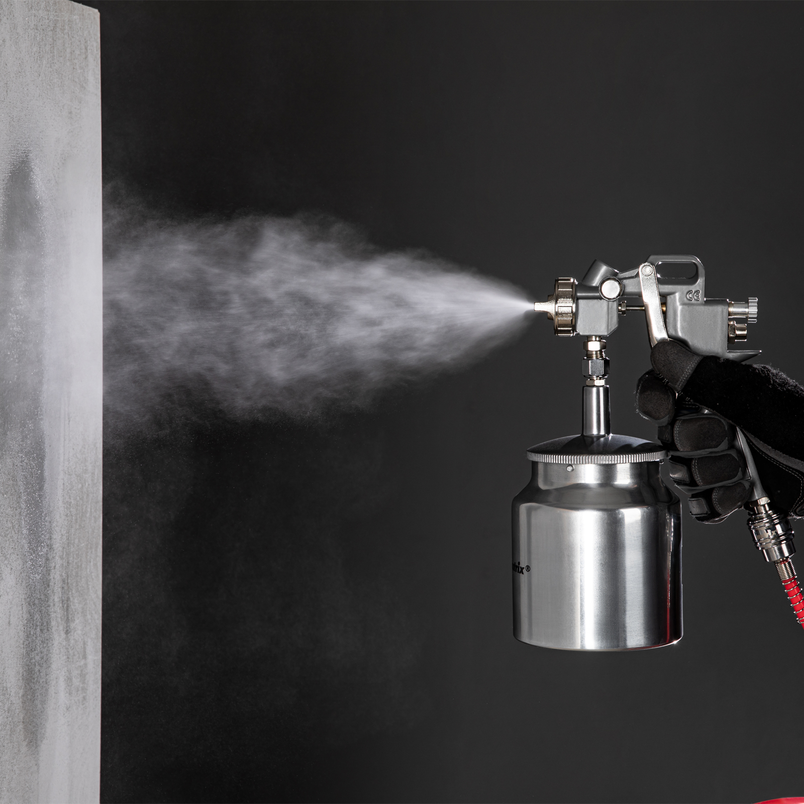 - Удобная эксплуатация — бак краскораспылителя расположен снизу и не загораживает обзор мастеру.