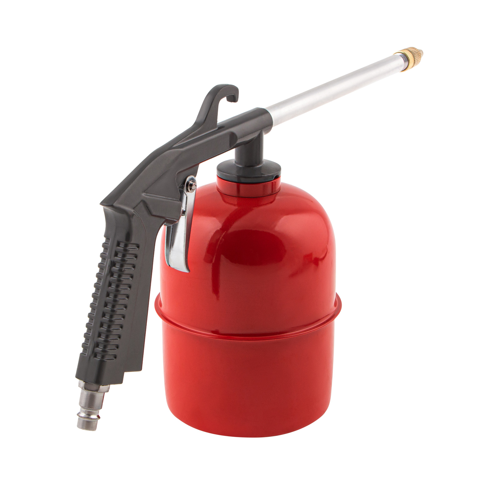 - Прочная и вместительная емкость — стальной бак промывочного пистолета объемом 0,85 л обеспечивает значительный запас жидкости.