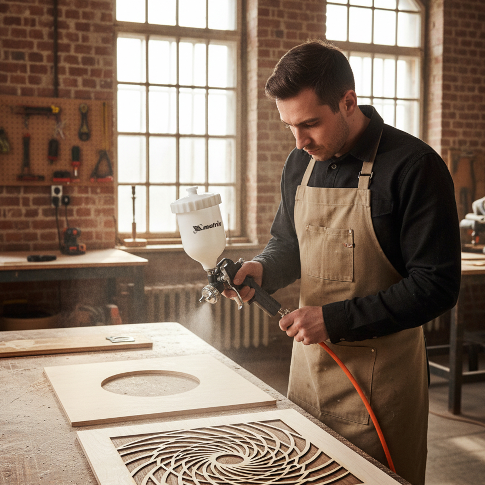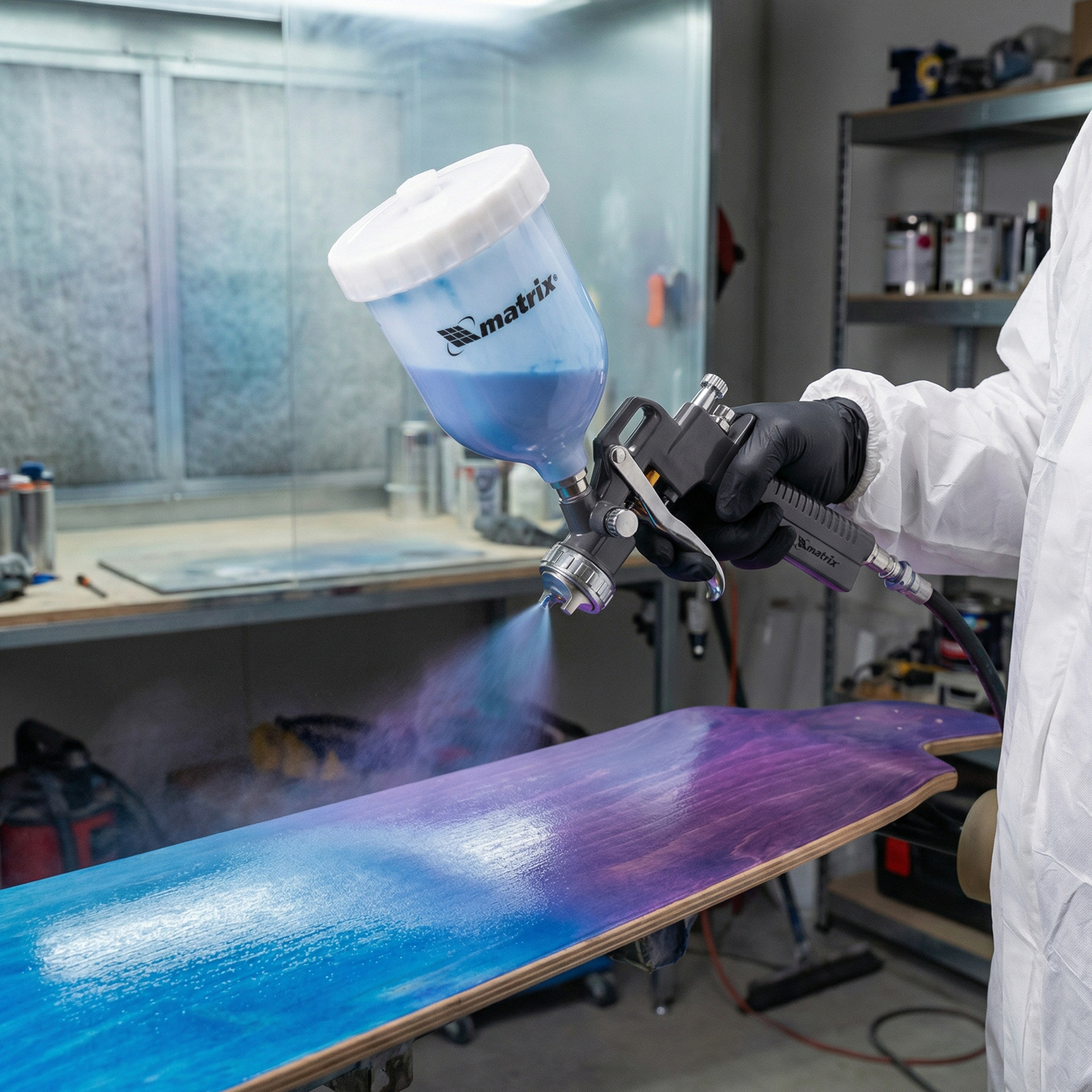 - Качественное окрашивание — технология распыления HVLP (высокий объем, низкое давление) позволяет снизить потери краски при работе краскораспылителем.