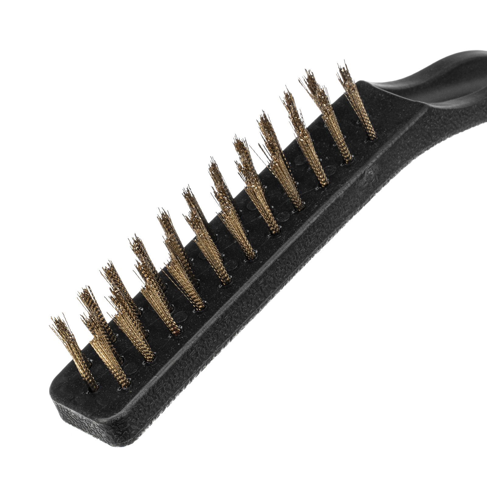 - Высокий ресурс — витая стальная проволока устойчива к деформации, латунированное покрытие защищает щетину от коррозии.