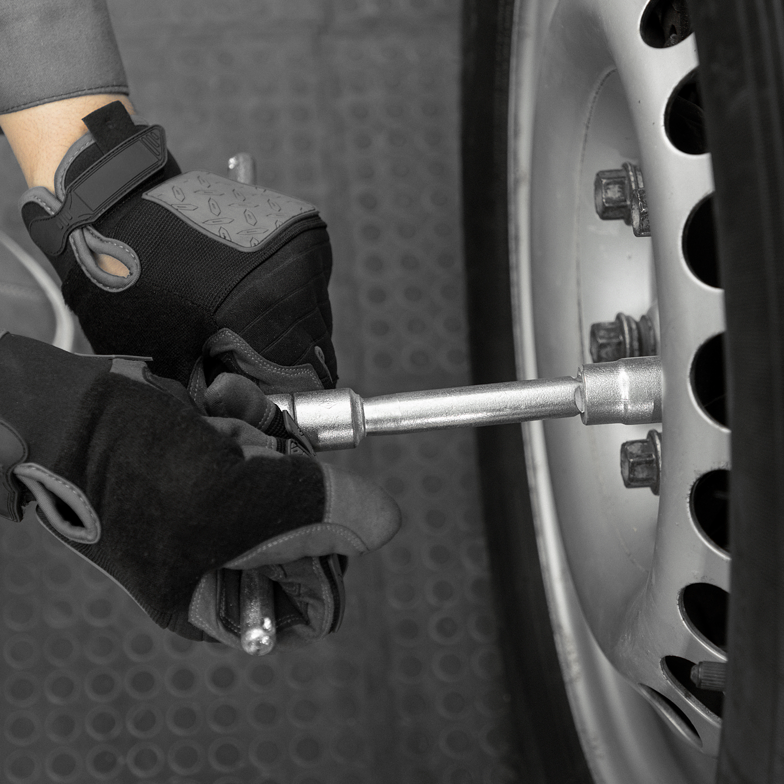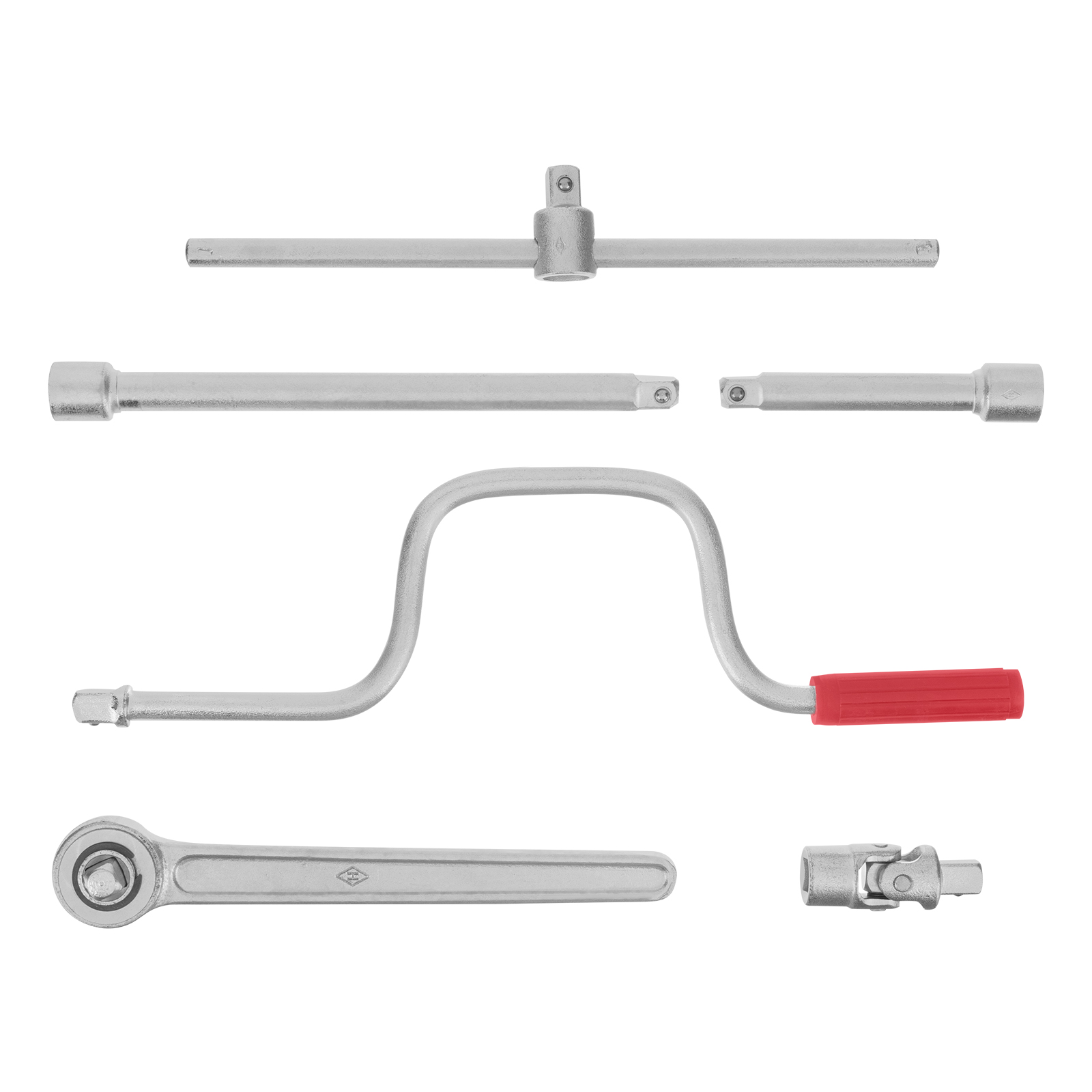 - Возможность работы в ограниченном пространстве — удлинители 125 и 250 мм, а также карданный шарнир позволяют откручивать крепеж под любым углом.