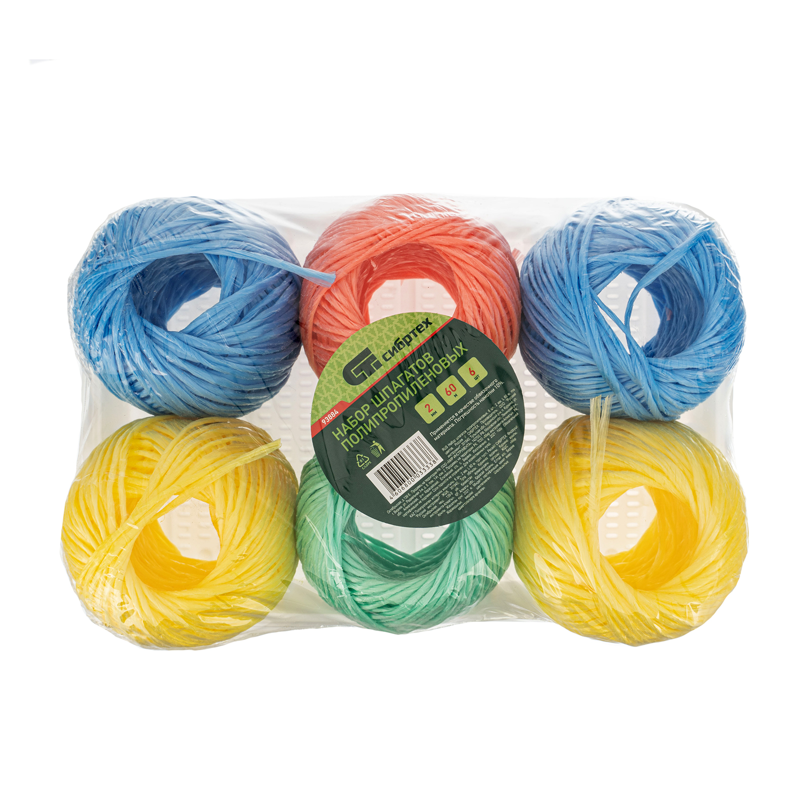Набор шпагатов полипропиленовых, 6 шт, 2 мм, L 60 м, MIX цветов, Сибртех в Уфе