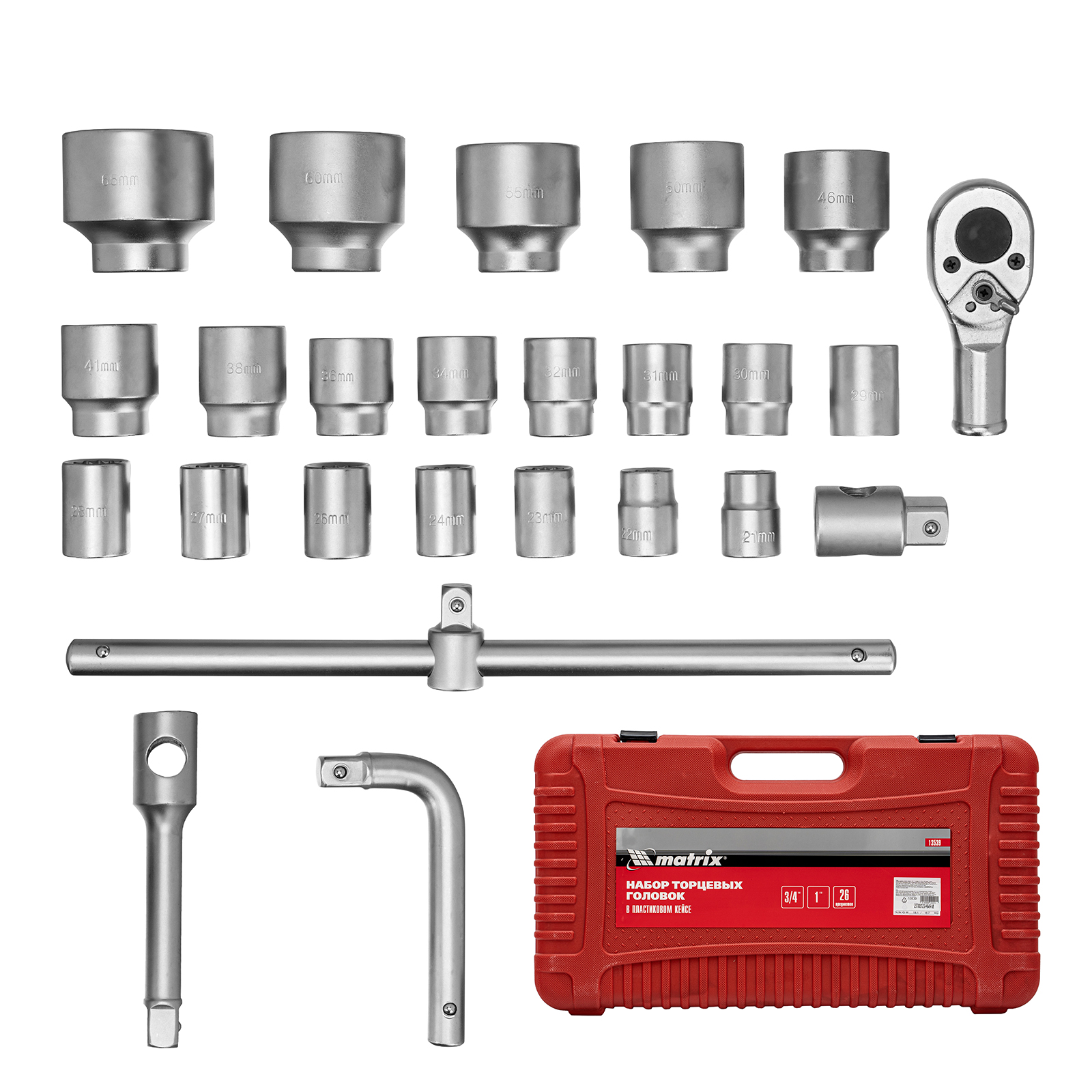 Набор торцевых головок 3/4"–1", головки 21 х 65 мм, 26 предметов, в пласт. боксе Matrix в Уфе