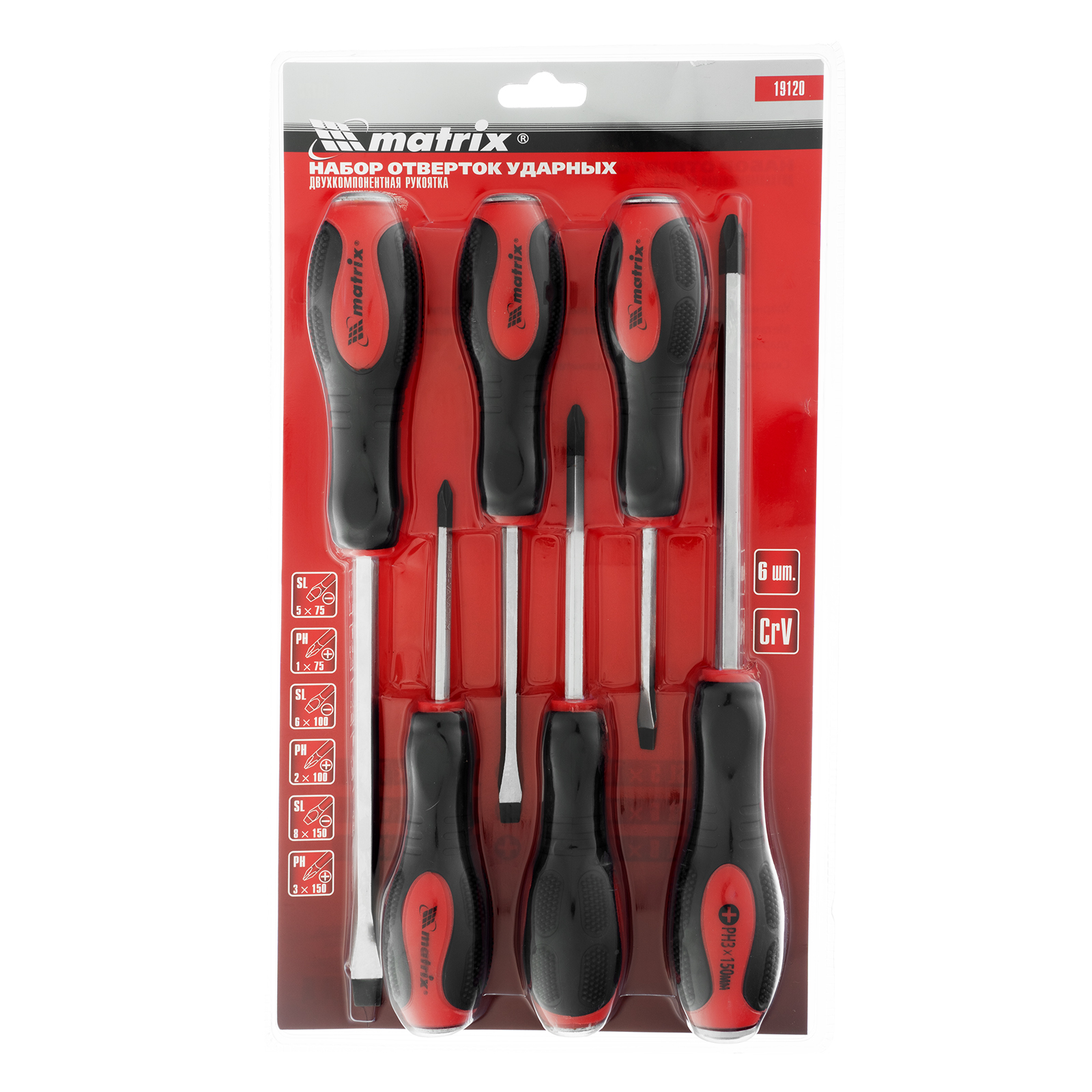Набор ударных отверток 6 шт, PH1 х 75, PH2 х 100, PH3 х 150, SL5 х 75, SL6 х 100, SL8 х 150, CrV Matrix в Уфе