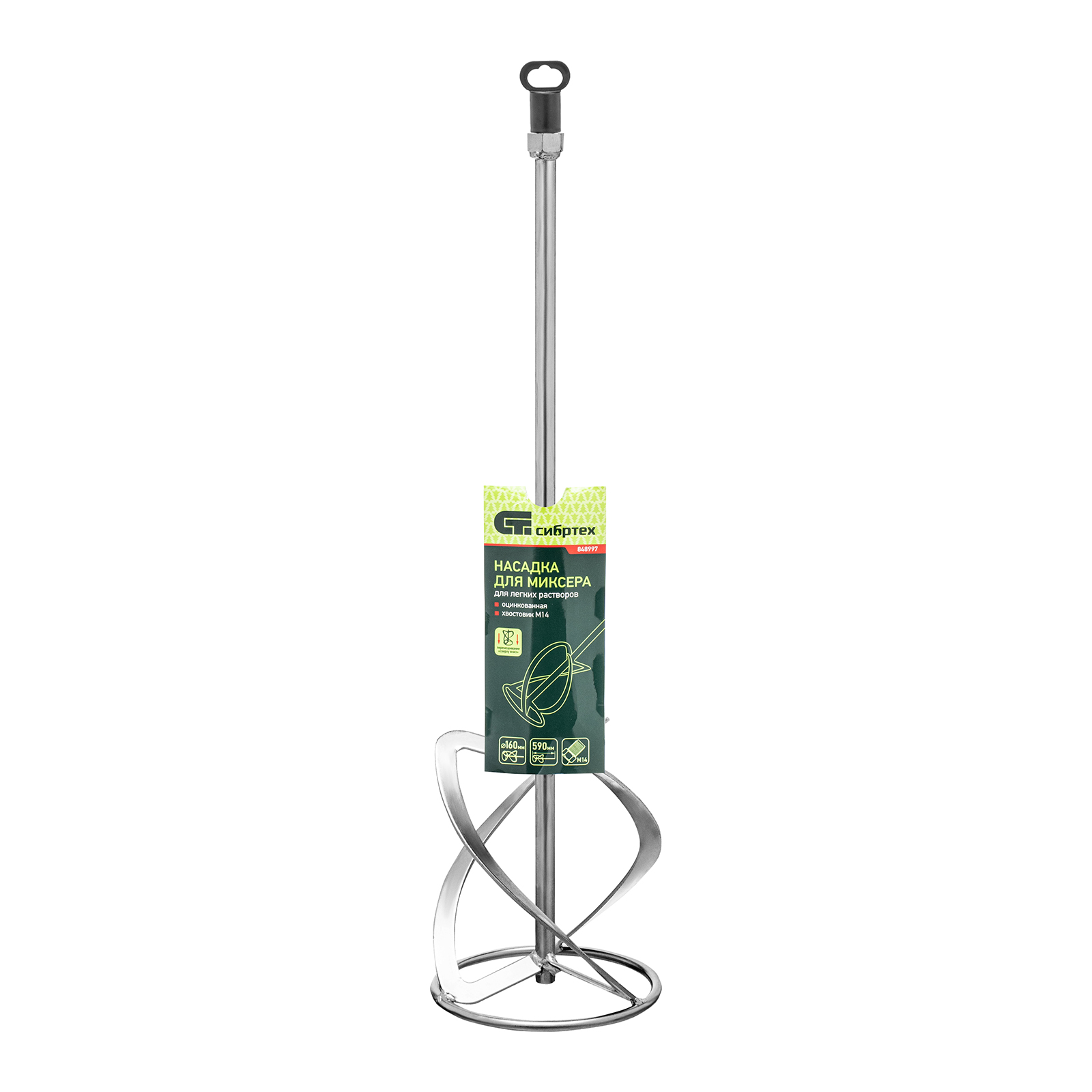 Насадка для миксера, для легких растворов, 160 х 590 мм, оцинкованная, хвостовик резьба М14 Сибртех в Уфе