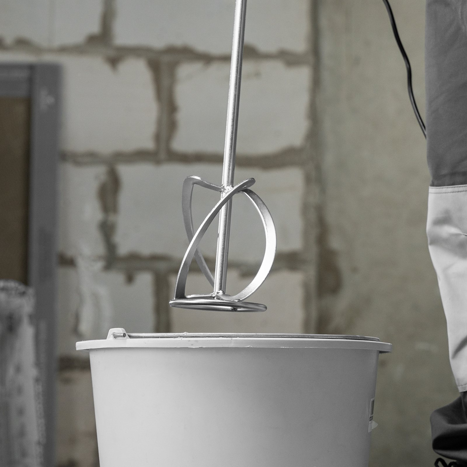 - Прочность — стальная насадка для строительного миксера не деформируется при размешивании густых смесей.