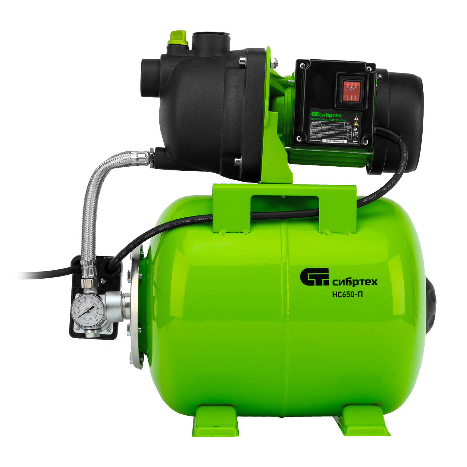 Насосная станция НС650-П, 650 Вт, напор 37 м, 3200 л/ч, ресивер 19 л Сибртех в Уфе