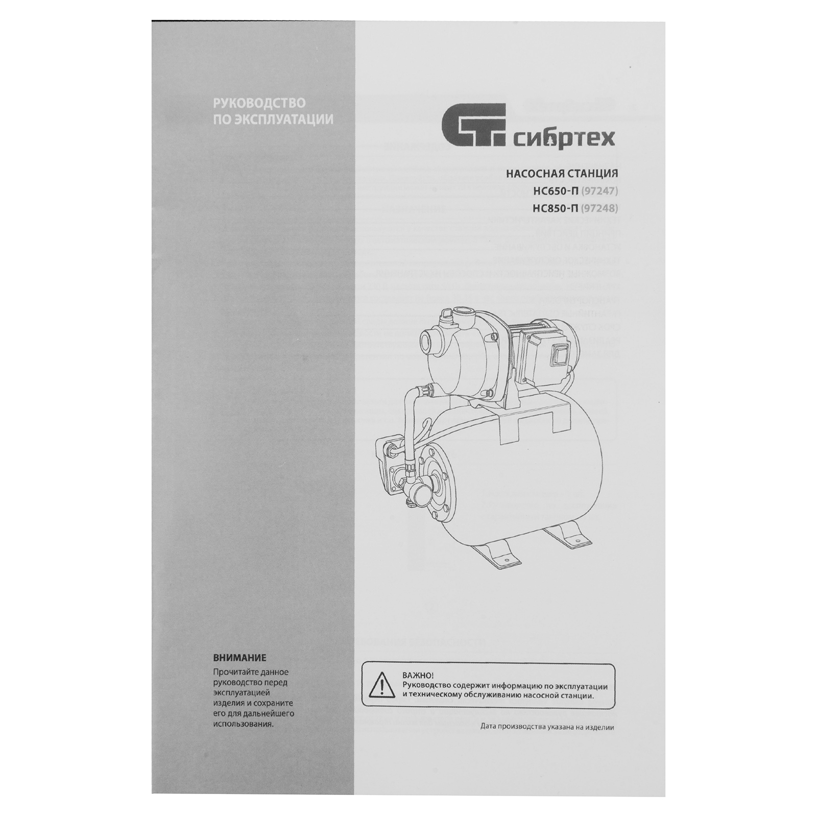 Насосная станция - 1 штРуководство по экслуатации - 1 шт |