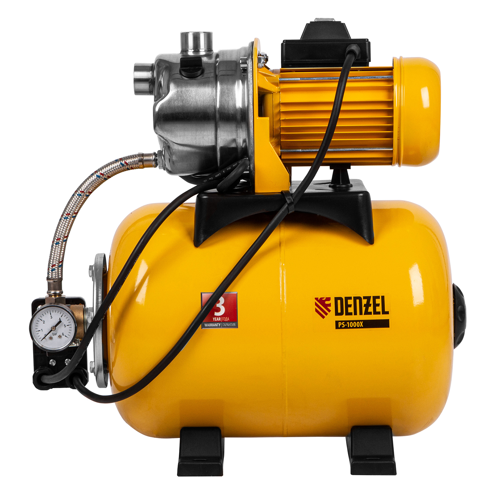 Насосная станция PS1000Х, 1000 Вт, 3500 л/ч, ресивер 24 л, подъем 44 м, нержавейка Denzel в Уфе