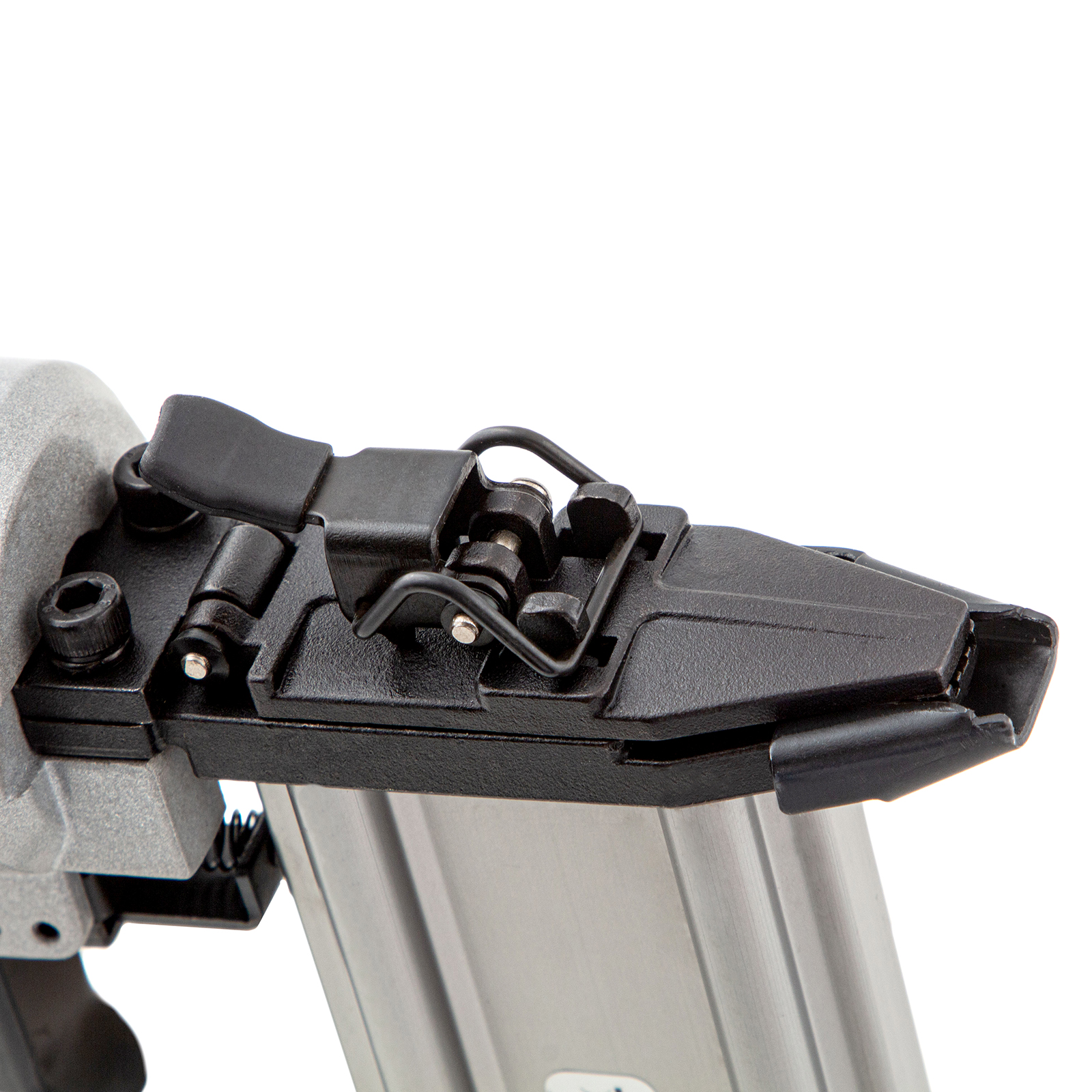- Магазин на 100 гвоздей — одной обоймы хватает надолго, что позволяет сэкономить время на зарядку инструмента.