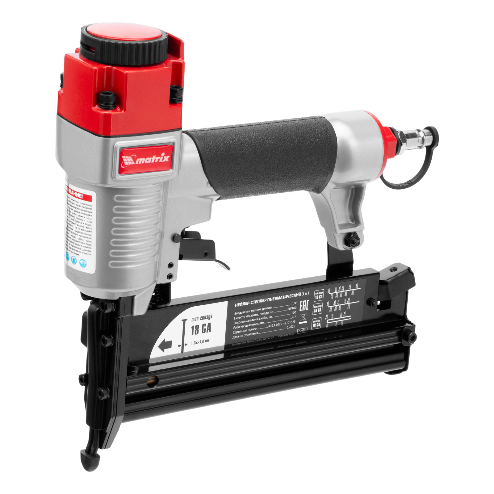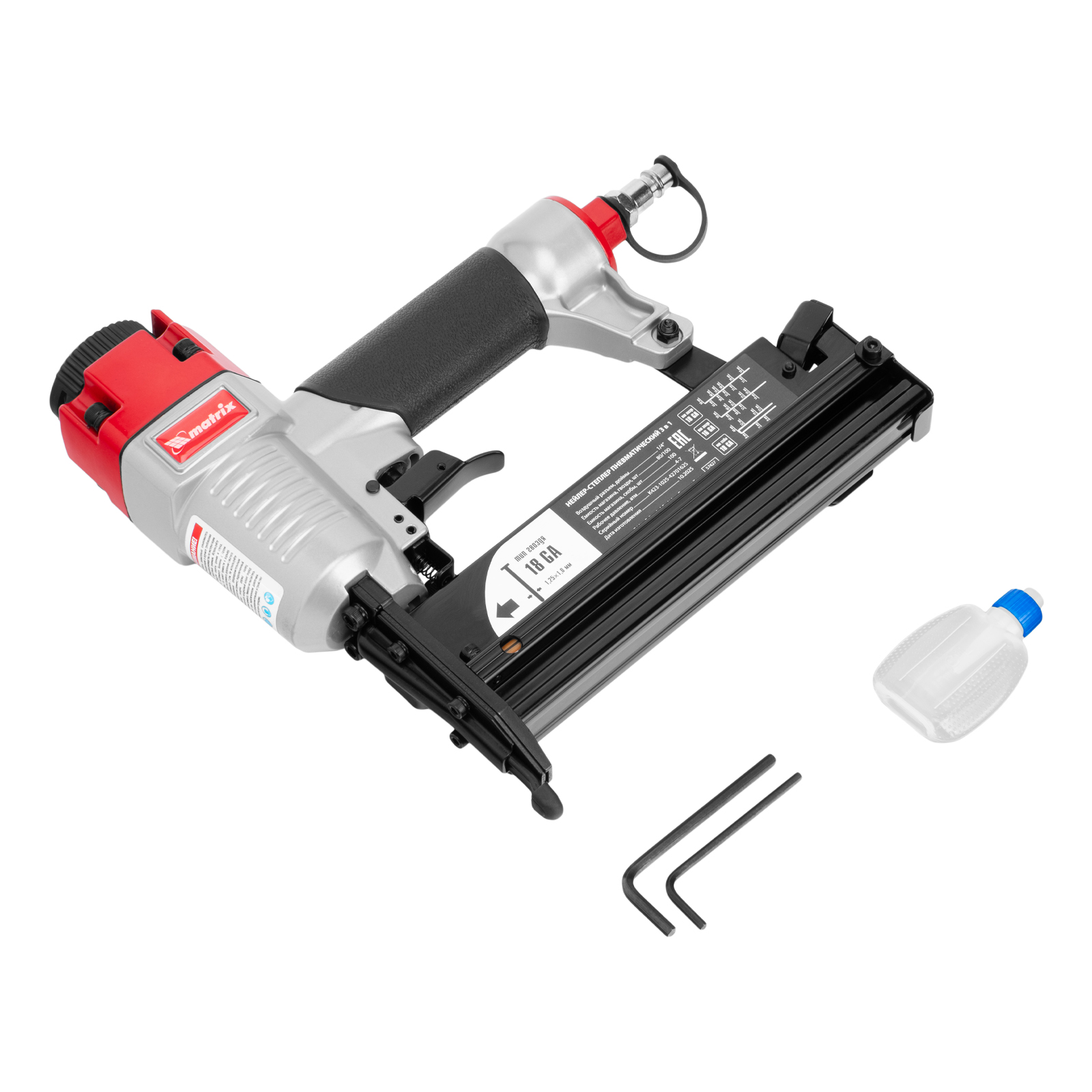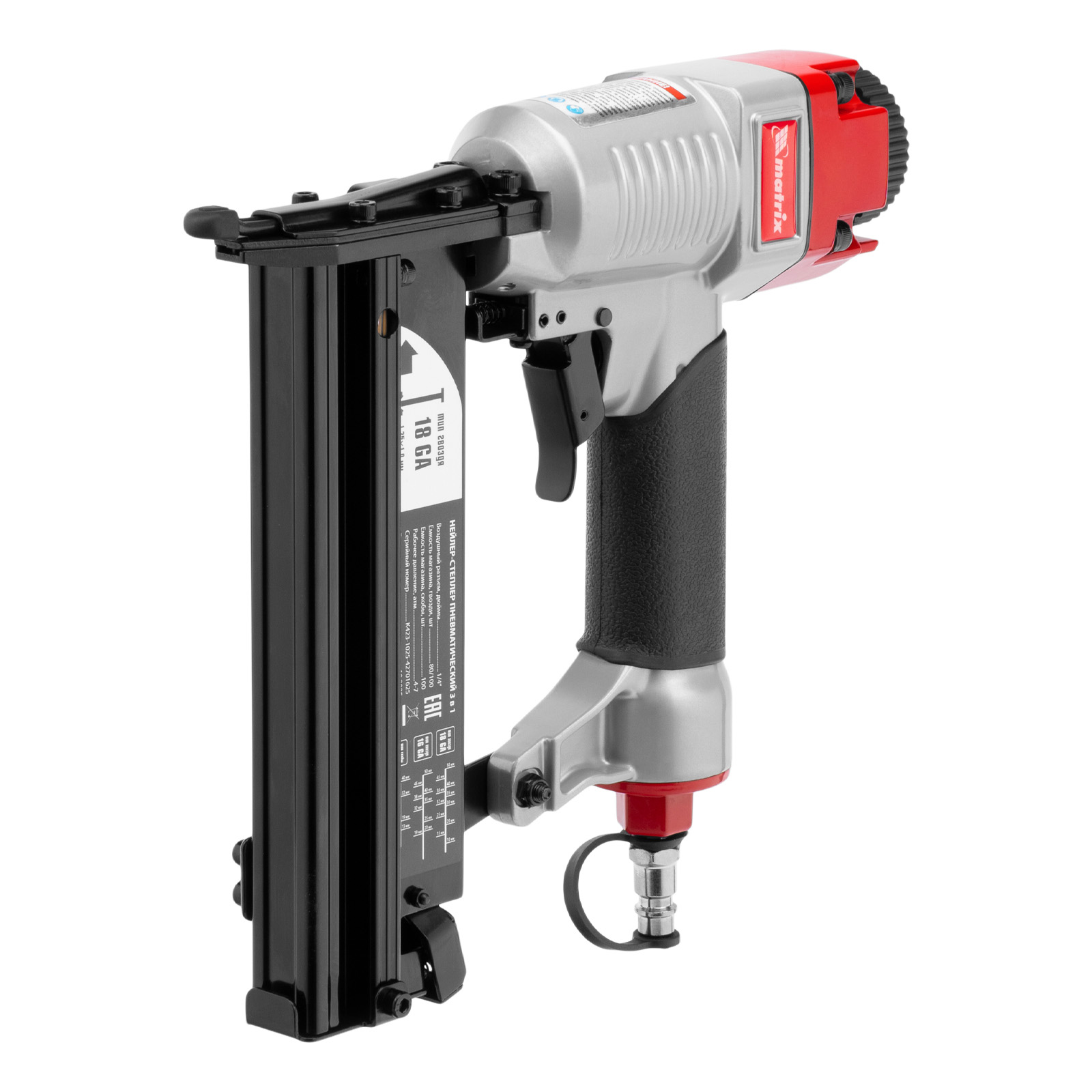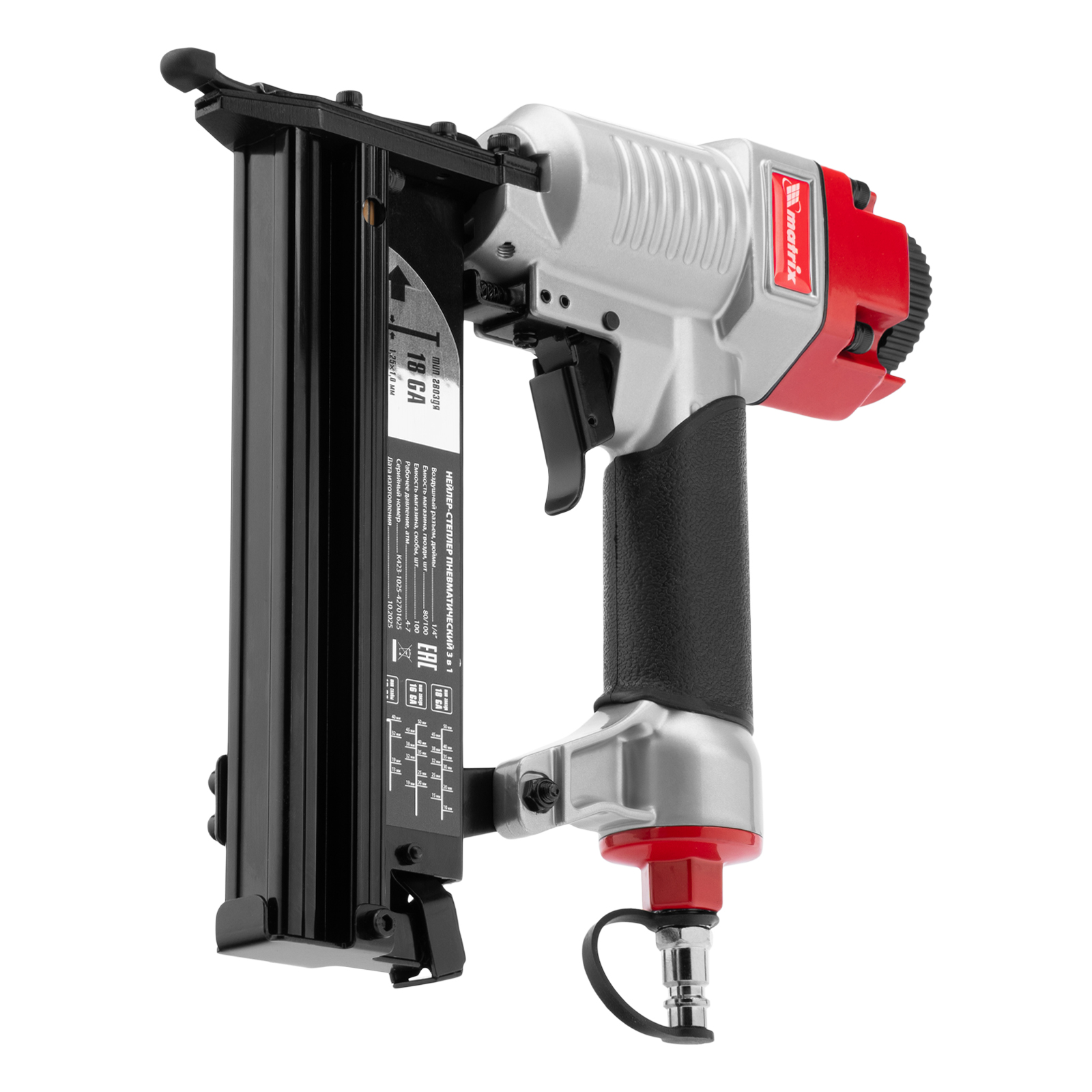 Нейлер-степлер пневматический 3 в 1, с регулировкой глубины забивания, гвозди 18GA, гвозди 16GA, скобы 18 GA Matrix в Уфе