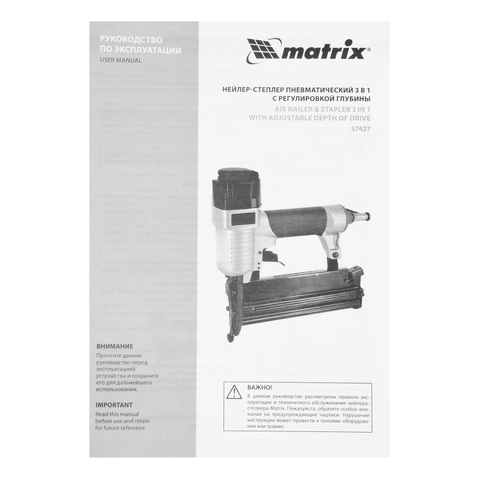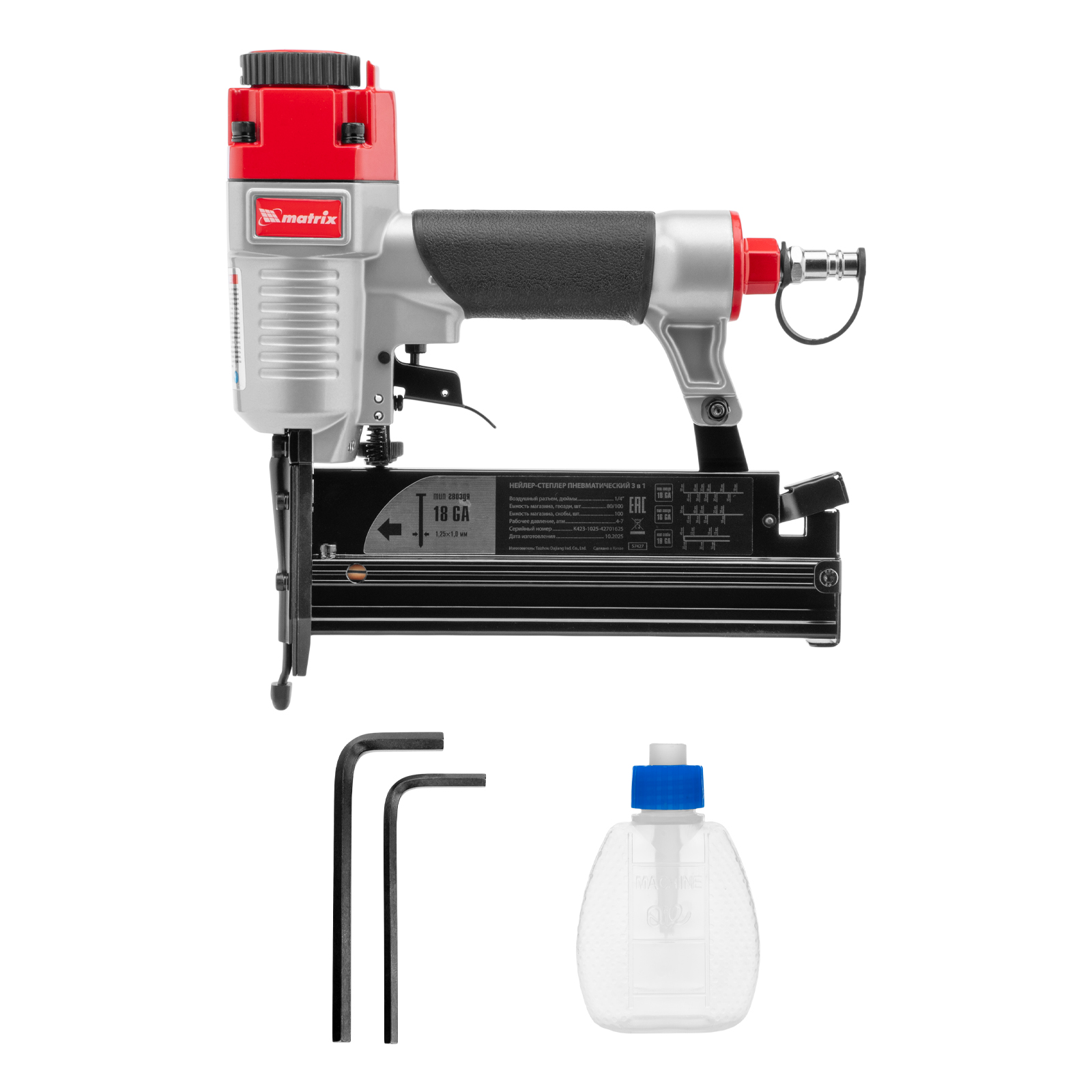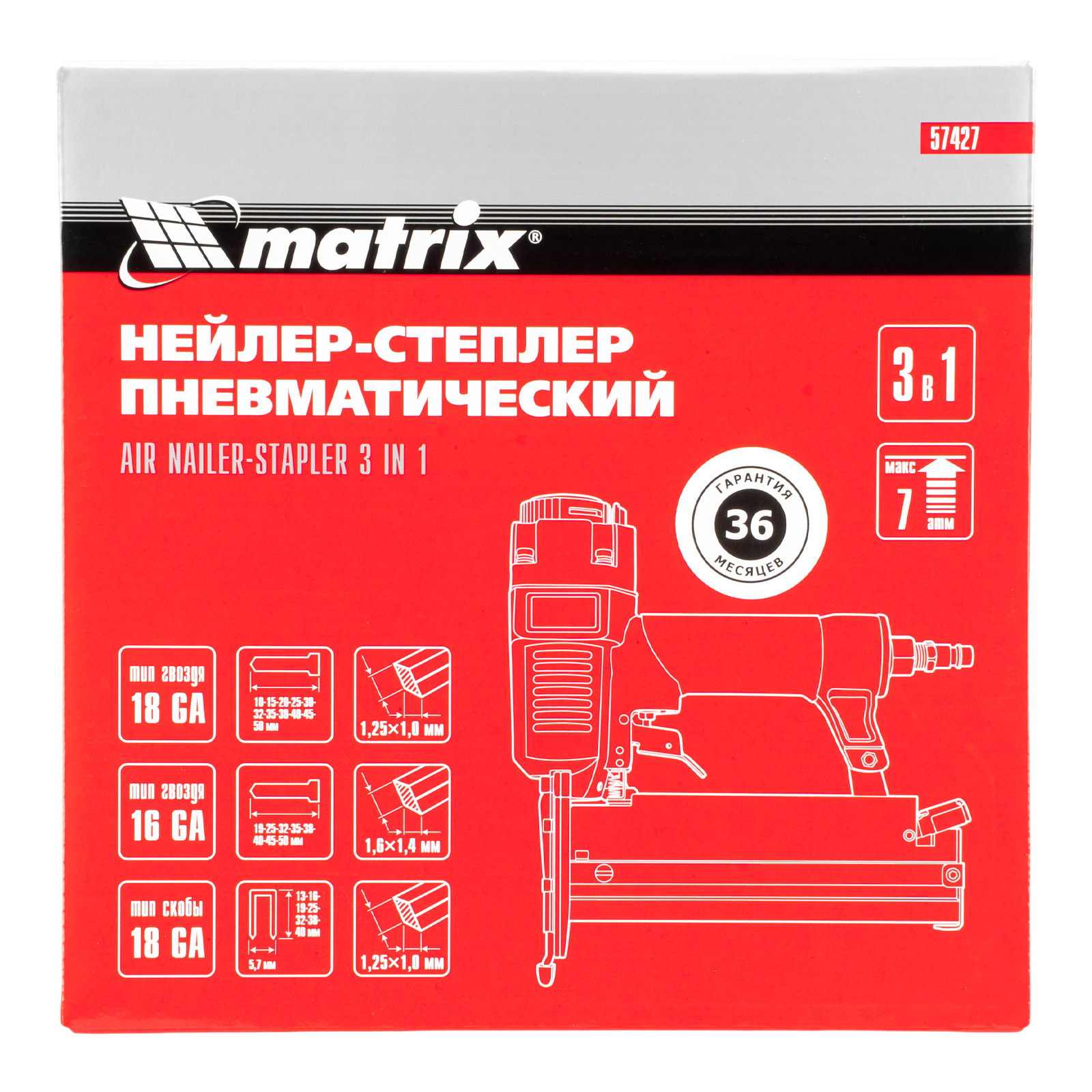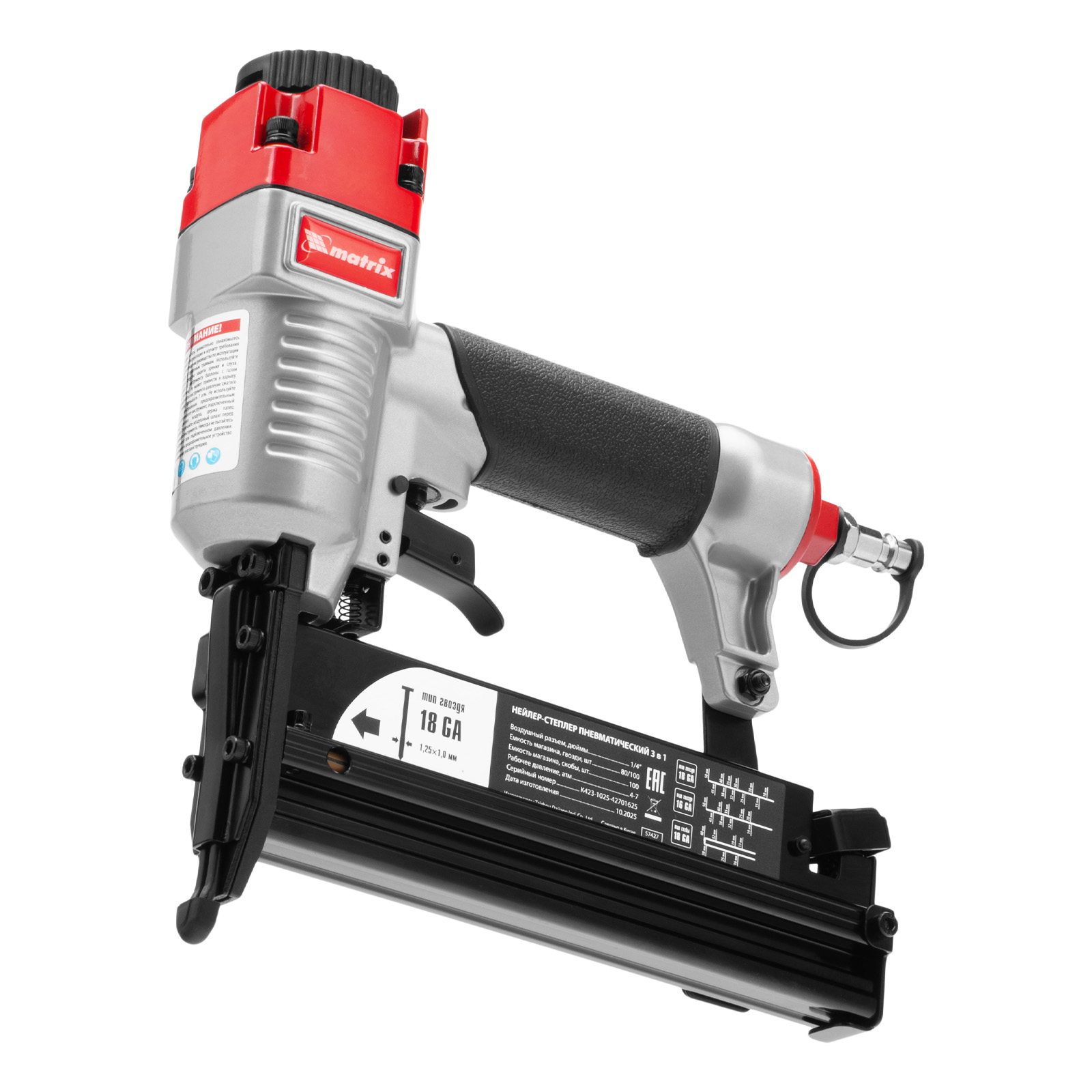 Нейлер-степлер пневматический 3 в 1, с регулировкой глубины забивания, гвозди 18GA, гвозди 16GA, скобы 18 GA Matrix в Уфе