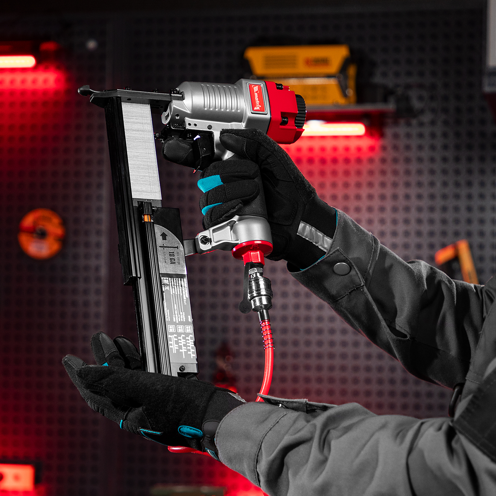 - Малый вес 1,33 кг — длительная работа со степлером-нейлером не вызывает дискомфорт.