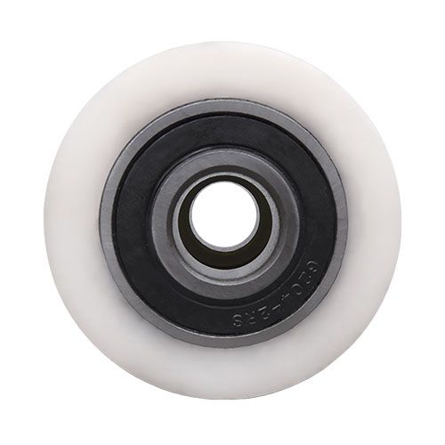 Ролик нейлоновый 80х70 предназначен для тележек и складской техники. В ступице установлены шариковые подшипники, обеспечивающие хорошее вращение и выдерживающие высокую нагрузку. Устанавливаются в гидравлические тележки (рохли), предназначенные для движения только по ровной и твёрдой поверхности. Хорошо переносят прямой контакт с агрессивным химическим соединениям.