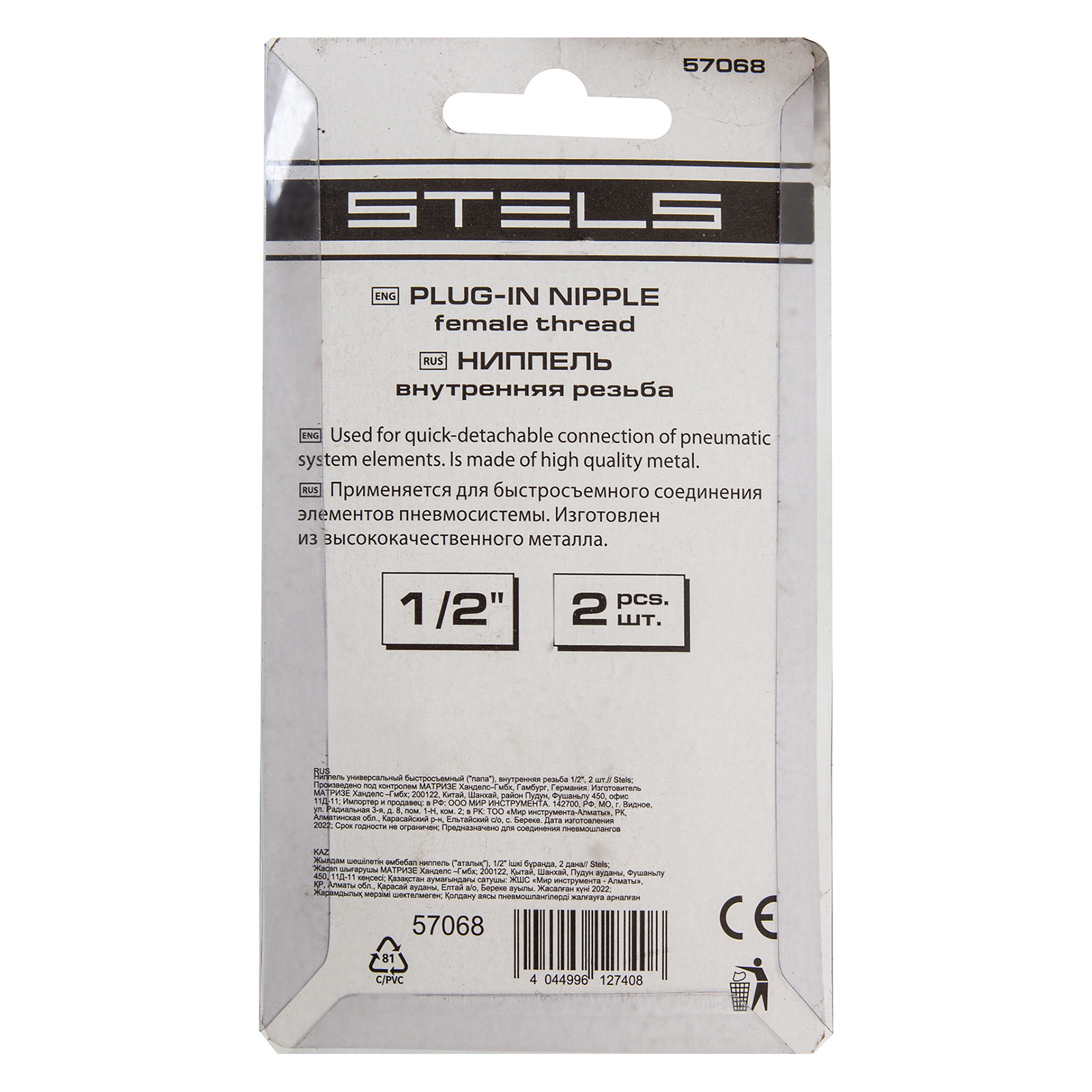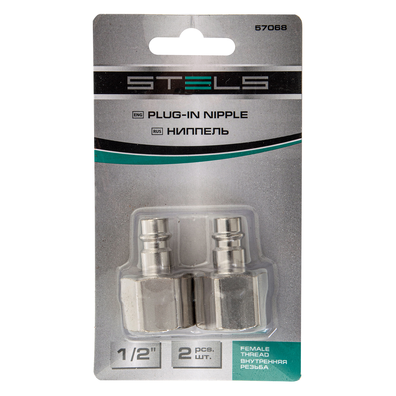 Универсальный быстросъемный ниппель Stels 57068, 2 шт. в упаковке, предназначен для перехода с внутренней резьбы 1/2 дюйма на рапид типа «папа» для монтажа пневматических линий. Используется для работы с пневмоинструментом, будет полезен на строительной площадке, в гараже и автосервисе.