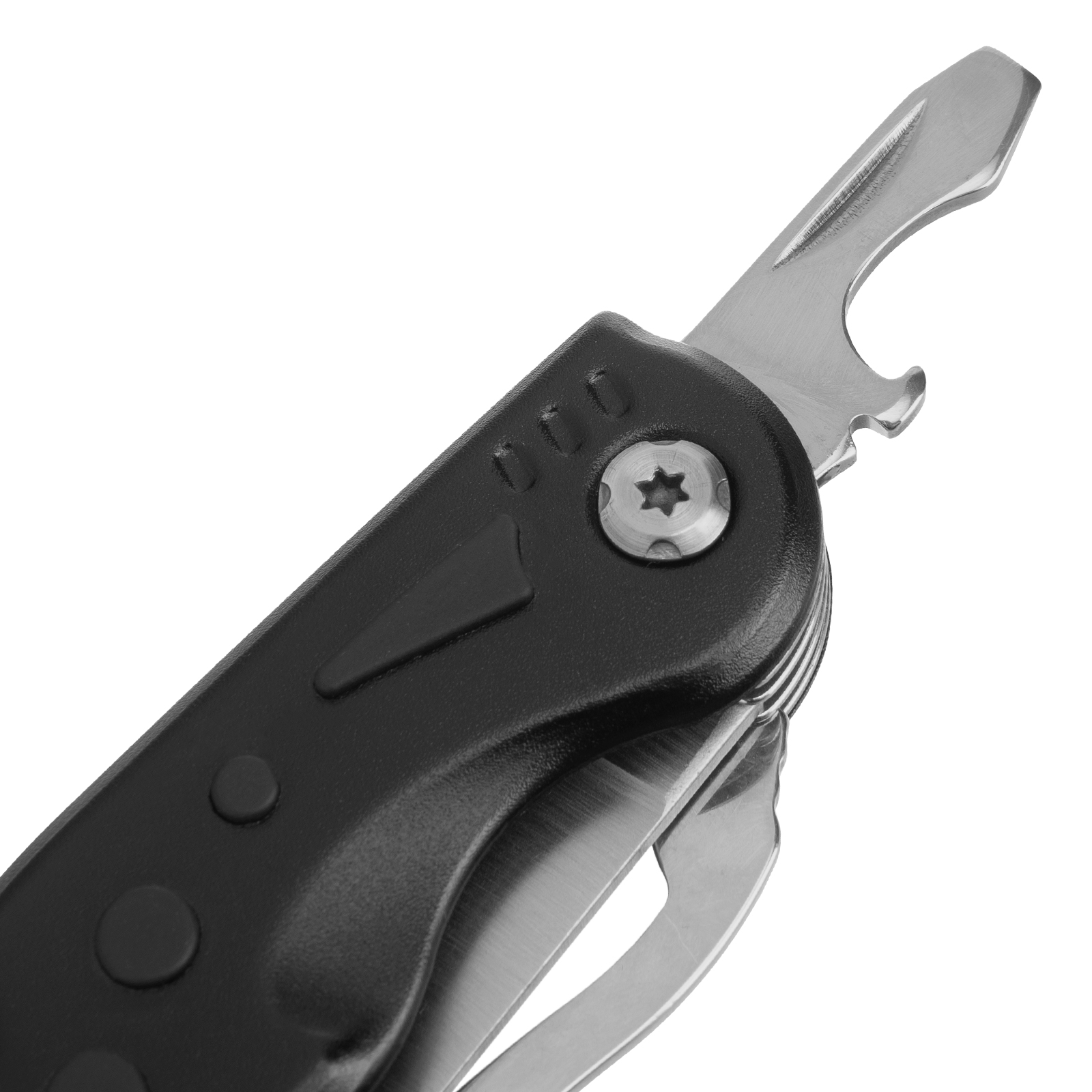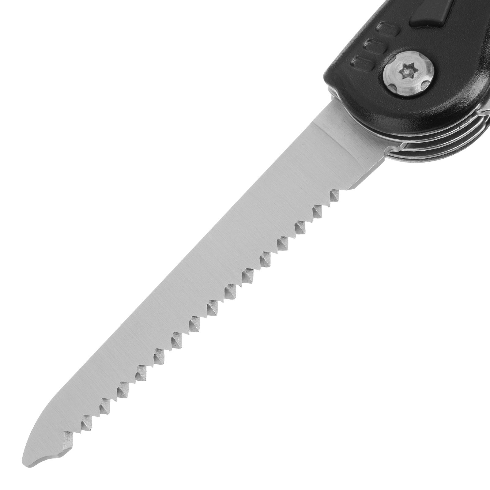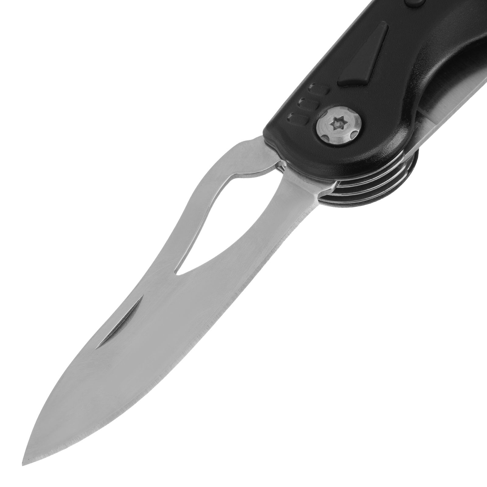 Многофункциональный нож Matrix 17624 длиной 107 мм имеет 7 функций и поставляется с чехлом. Способен резать картон и другие материалы, откручивать и закручивать резьбовой крепеж, открывать бутылки и консервные банки. Складной нож будет полезен дома, на даче, на пикнике, охоте или рыбалке, также пригодится в гараже.