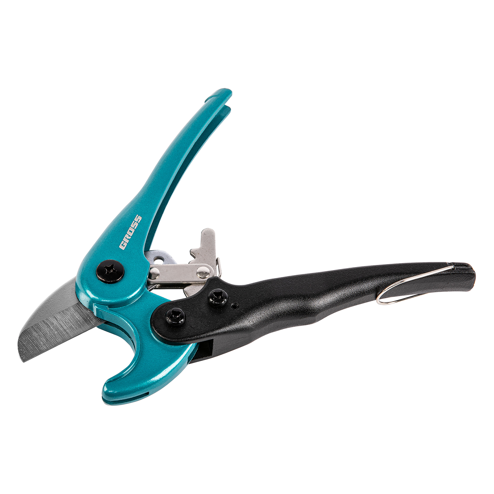 Универсальные ножницы для резки изделий из ПВХ Gross 78425 применяются для работы с пластиковыми трубами диаметром до 32 мм, а также для разрезания профилей, плинтусов, галтелей, реек, планок, резиновых шлангов и других предметов. Прямой нож инструмента позволяет резать плоские заготовки. Ножницы пригодятся для выполнения сантехнических и отделочных работ.
