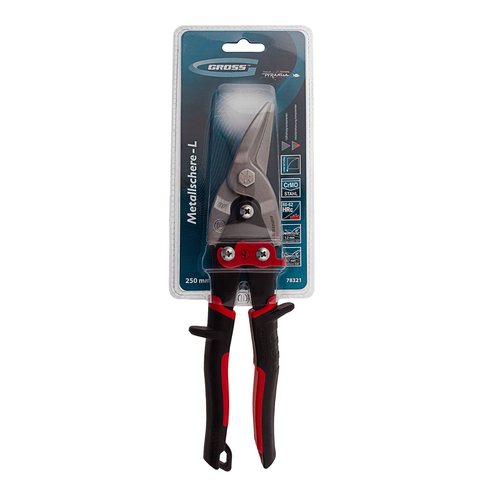Ножницы по металлу Gross PIRANHA 78321 длиной 250 мм, из стали CrMo, с двухкомпонентными рукоятками, предназначены для прямого и левого реза по листовым заготовкам. Изогнутая рабочая часть облегчает выполнение длинных точных разрезов. Двойной рычажный механизм уменьшает нагрузку на руку при резке толстого металла. Ножницы справляются с холоднокатаной сталью толщиной до 1,2 мм и с нержавеющей сталью толщиной до 0,7 мм. Инструмент используется для проведения профессиональных слесарных работ.
