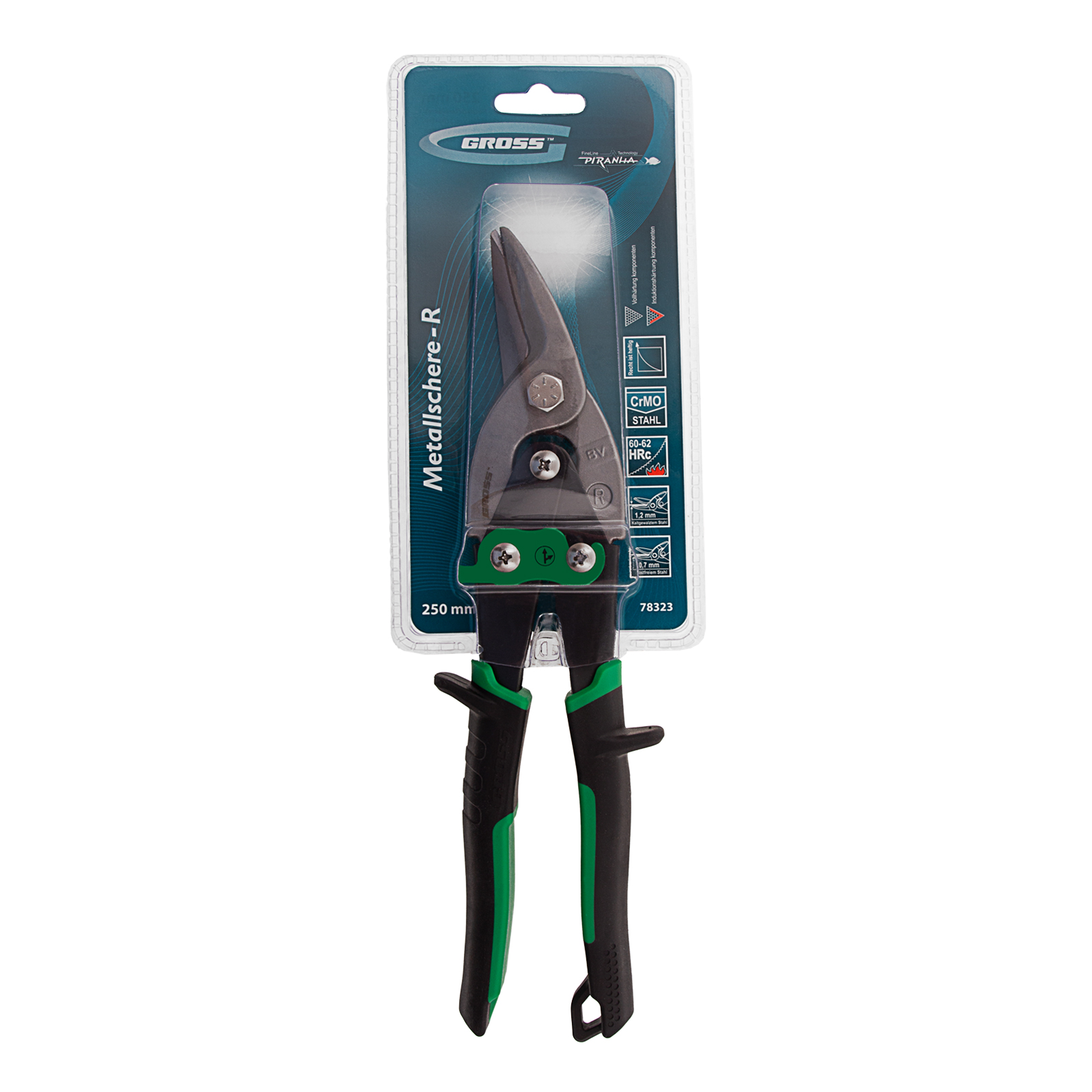 Ножницы по металлу Gross PIRANHA 78323 длиной 250 мм, из стали CrMo, с двухкомпонентными рукоятками, предназначены для прямого и правого реза по листовым заготовкам. Изогнутая рабочая часть облегчает выполнение длинных точных разрезов. Двойной рычажный механизм уменьшает нагрузку на руку при резке толстого металла. Ножницы справляются с холоднокатаной сталью толщиной до 1,2 мм и с нержавеющей сталью толщиной до 0,7 мм. Инструмент используется для проведения профессиональных слесарных работ.