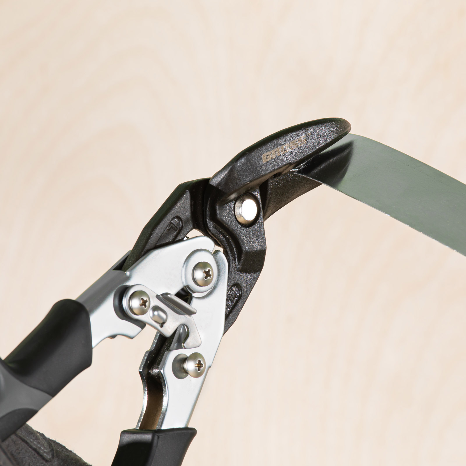 - Высокая режущая способность — лезвия закалены индукционными токами до твердости 60-62 HRC, поэтому успешно справляются с резкой листового металла.