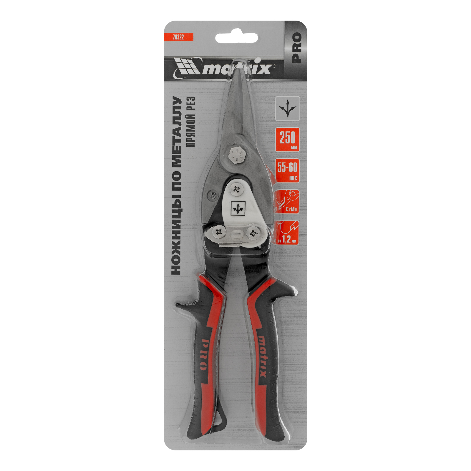 Ножницы по металлу, 250 мм, прямой рез, сталь CRMO, двухкомпонентные рукоятки, PRO Matrix в Уфе