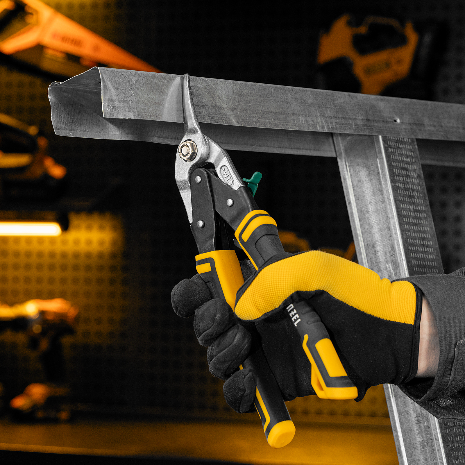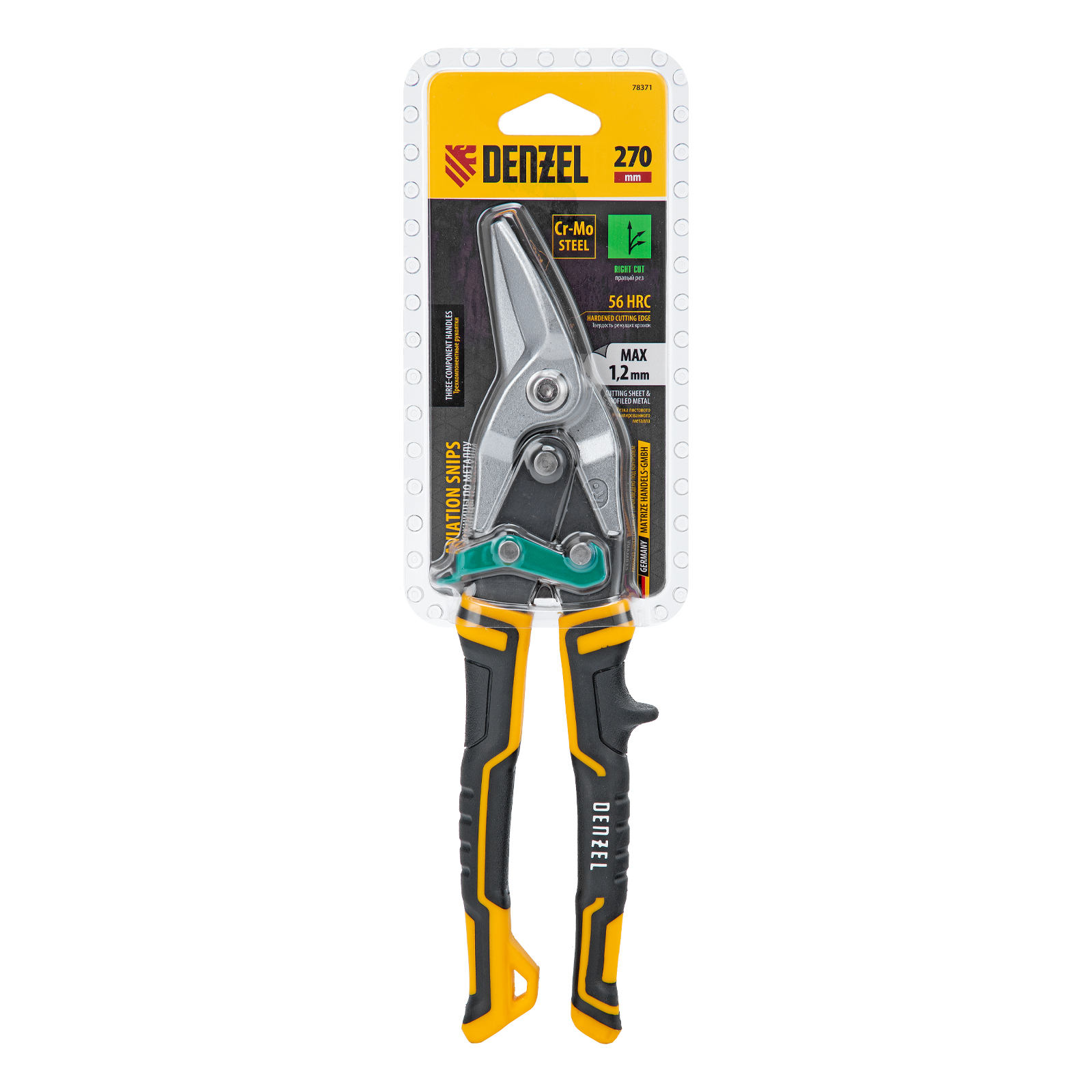 Ножницы по металлу Denzel 78371 общей длиной 270 мм, из стали-CrMo, с трехкомпонентными рукоятками, предназначены для прямого и правого реза листовых металлических заготовок и металлопрофиля толщиной до 1,2 мм. Инструмент с усиленной конструкцией осевого шарнира рассчитан на профессиональное использование. Ножницы используются для проведения строительных, кровельных и слесарных работ.