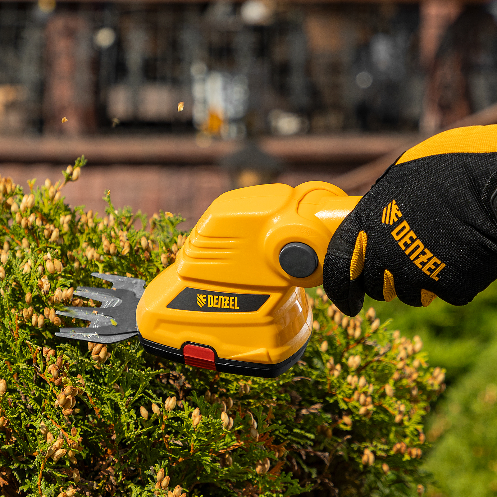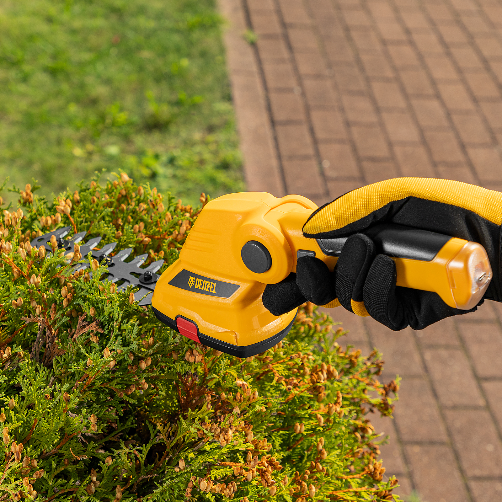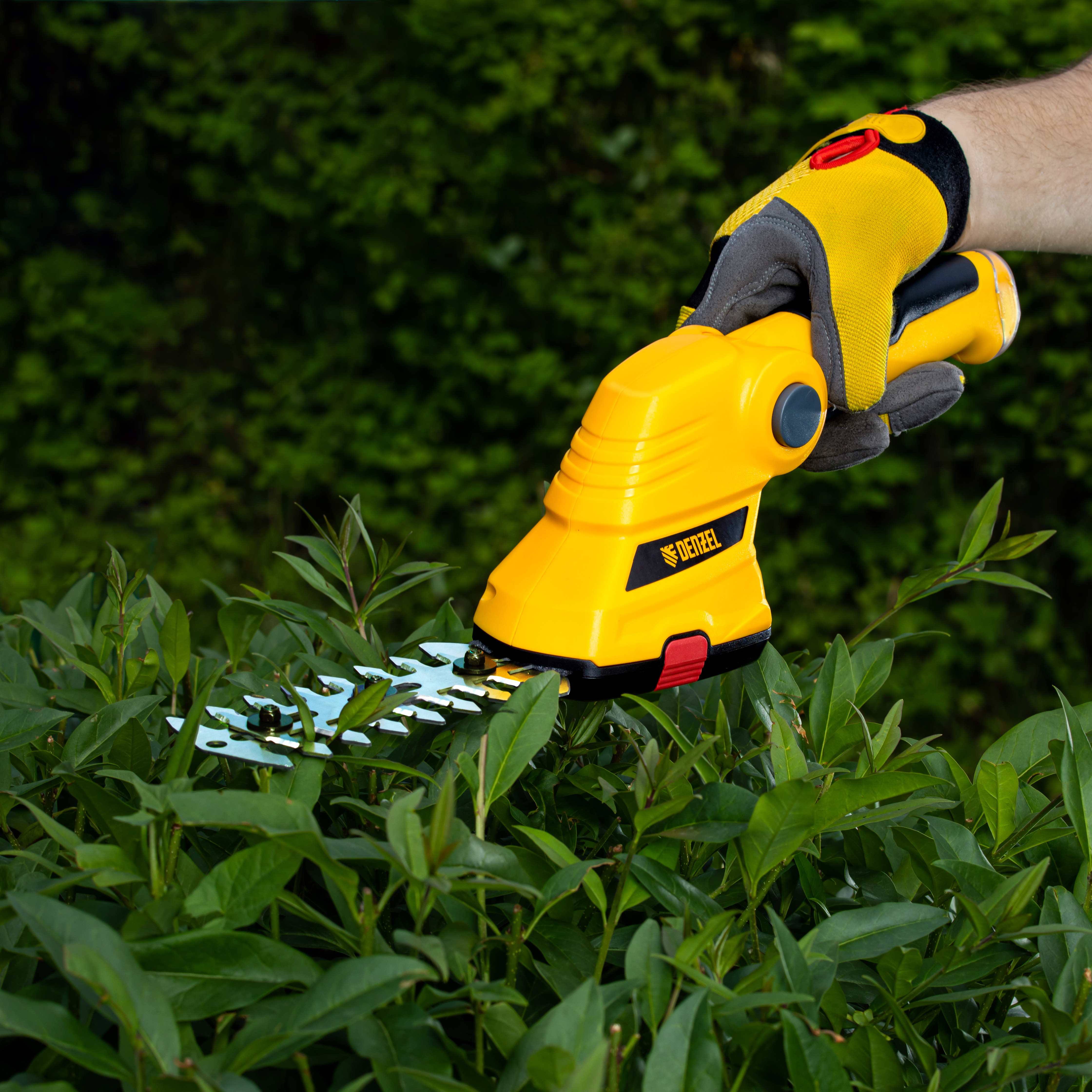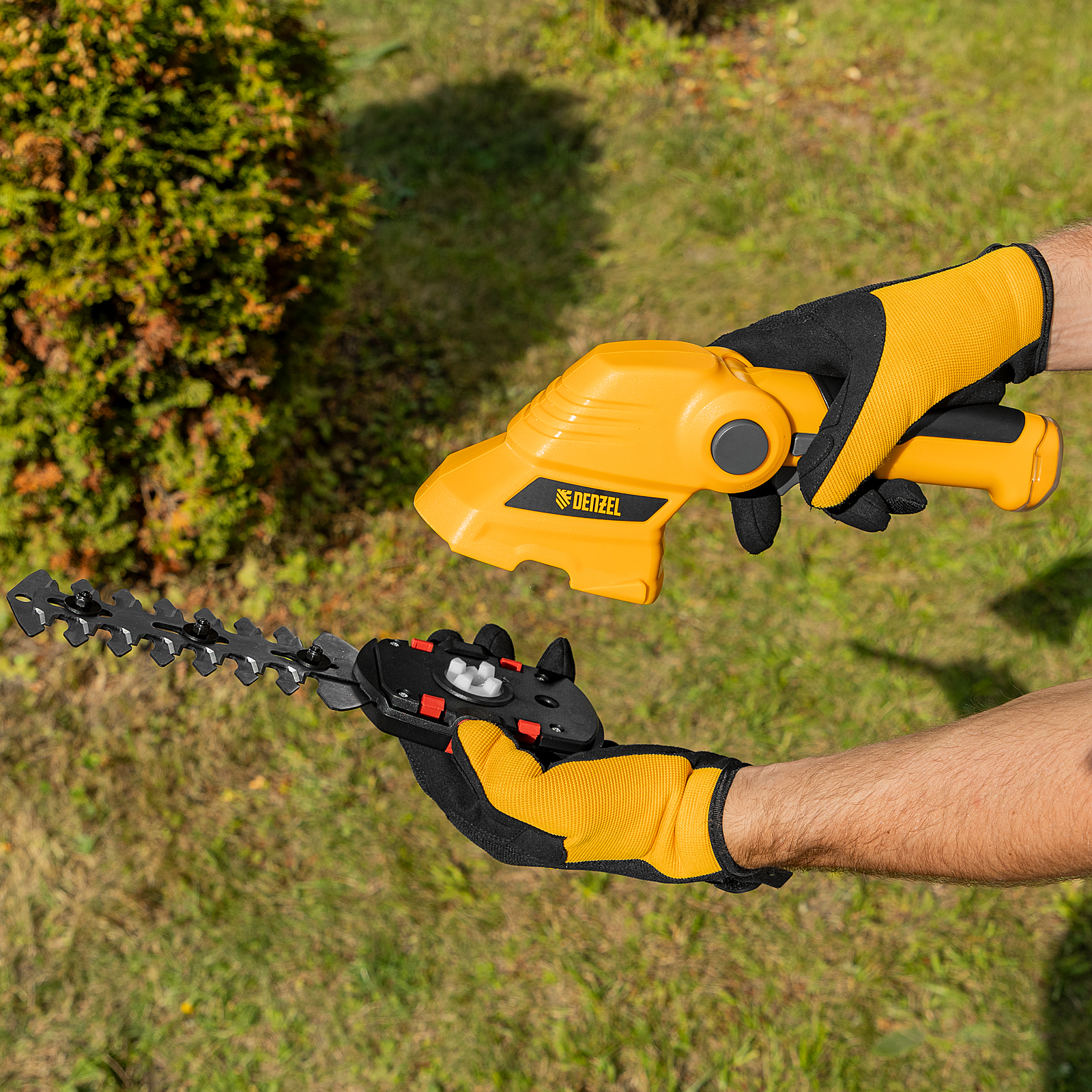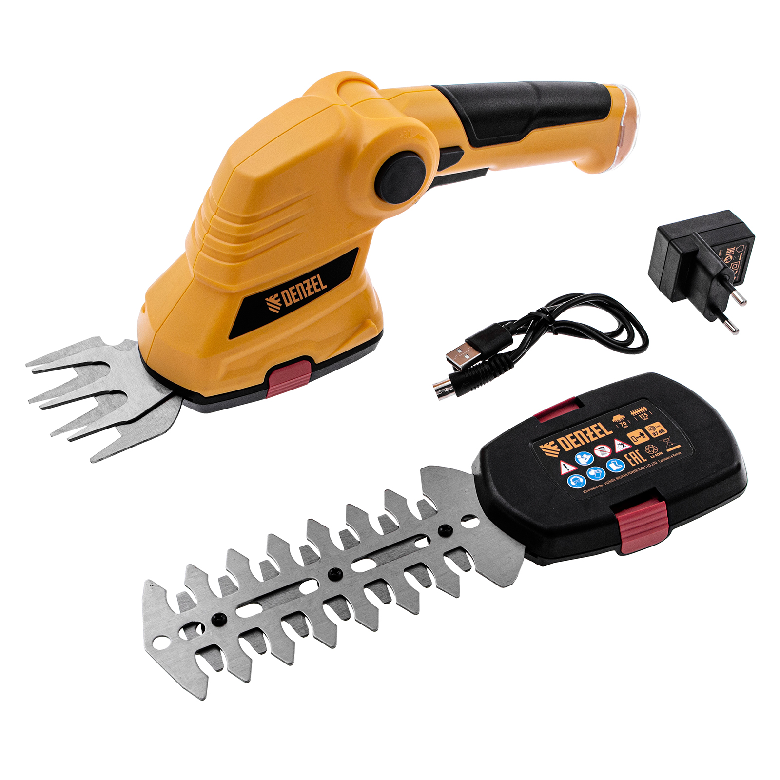 Аккумуляторные ножницы-кусторез Denzel G411 96817 с Li-Ion батареей напряжением 3,6 В и емкостью 1,5 Ач предназначены для поддержания декоративной растительности на дачном участке в аккуратном виде. В комплект входят две оснастки: для подрезания газонной травы и для обрезки кустов и тонких веток деревьев. Благодаря простому управлению и малому весу 0,6 кг с ножницами-кусторезами легко справятся даже пожилые люди.