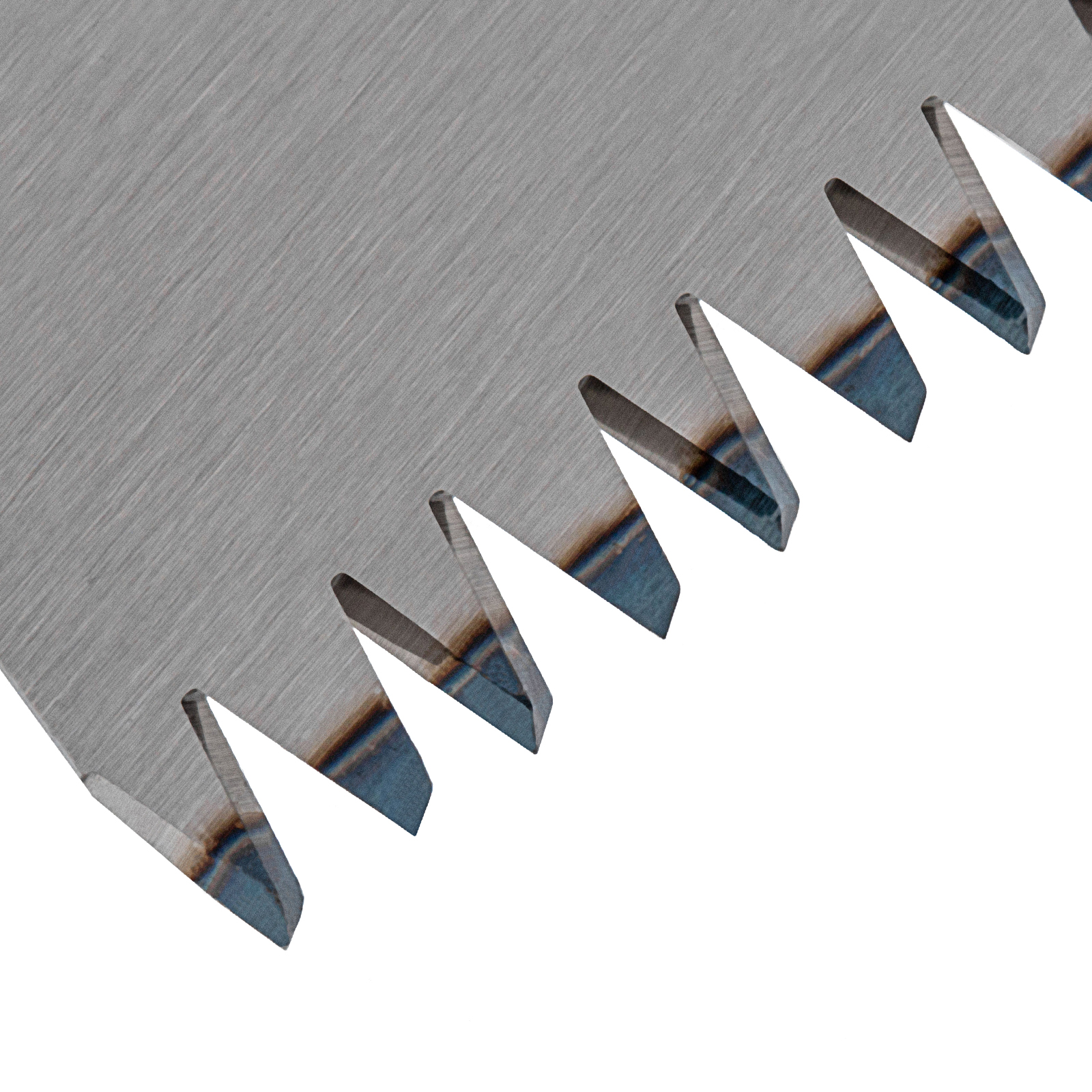 Ножовка по дереву Gross PIRANHA 24122 с полотном длиной 300 мм, калеными зубьями с 3D-заточкой и шагом 7 TPI, с 2-компонентной рукояткой, используется для распиливания древесины, МДФ, ДСП, ДВП, ламината, а также пенополистирола, полиуретана и других пластических материалов. Подходит для продольного и поперечного пиления. Зубья имеют универсальный шаг 7 TPI, поэтому ножовка подходит для решения широкого спектра задач. Трехгранная заточка зубьев обеспечивает максимальную производительность и высокое качество пиления. Ножовка предназначена для столярных и плотницких работ, пригодится во время ремонта и будет полезна в быту.