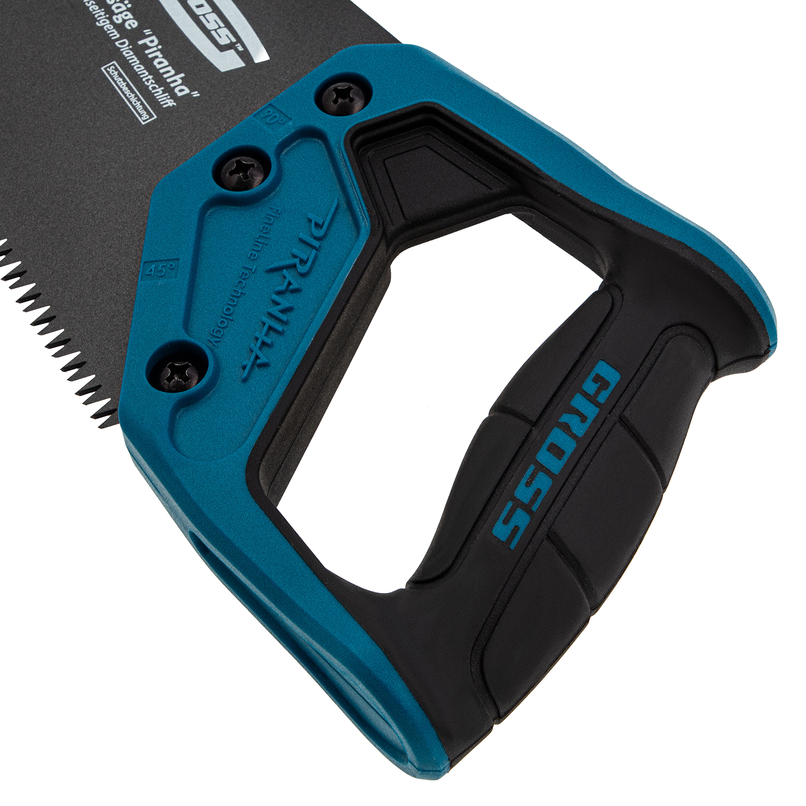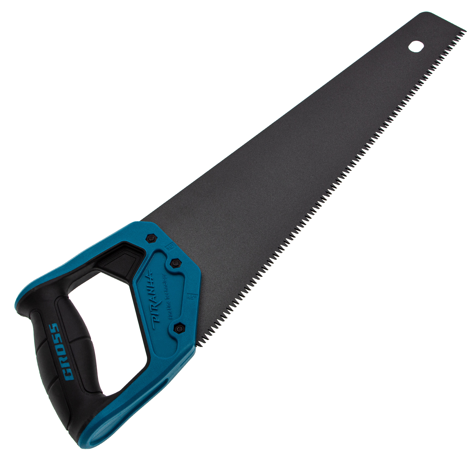 Ножовка по дереву Gross PIRANHA 24113 с полотном длиной 400 мм, калеными зубьями с 3D-заточкой и шагом 7 TPI, с тефлоновым покрытием полотна и 2-компонентной рукояткой, используется для продольного и поперечного распиливания древесины различных пород, МДФ, ДСП, ДВП, ламината, а также пенополистирола, полиуретана и других синтетических материалов. Рабочая часть состоит из крупных зубьев, поэтому ножовка подходит для решения широкого спектра задач. Трехгранная заточка зубьев увеличивает производительность инструмента без потери качества распиловки. Ножовка предназначена для столярных работ.