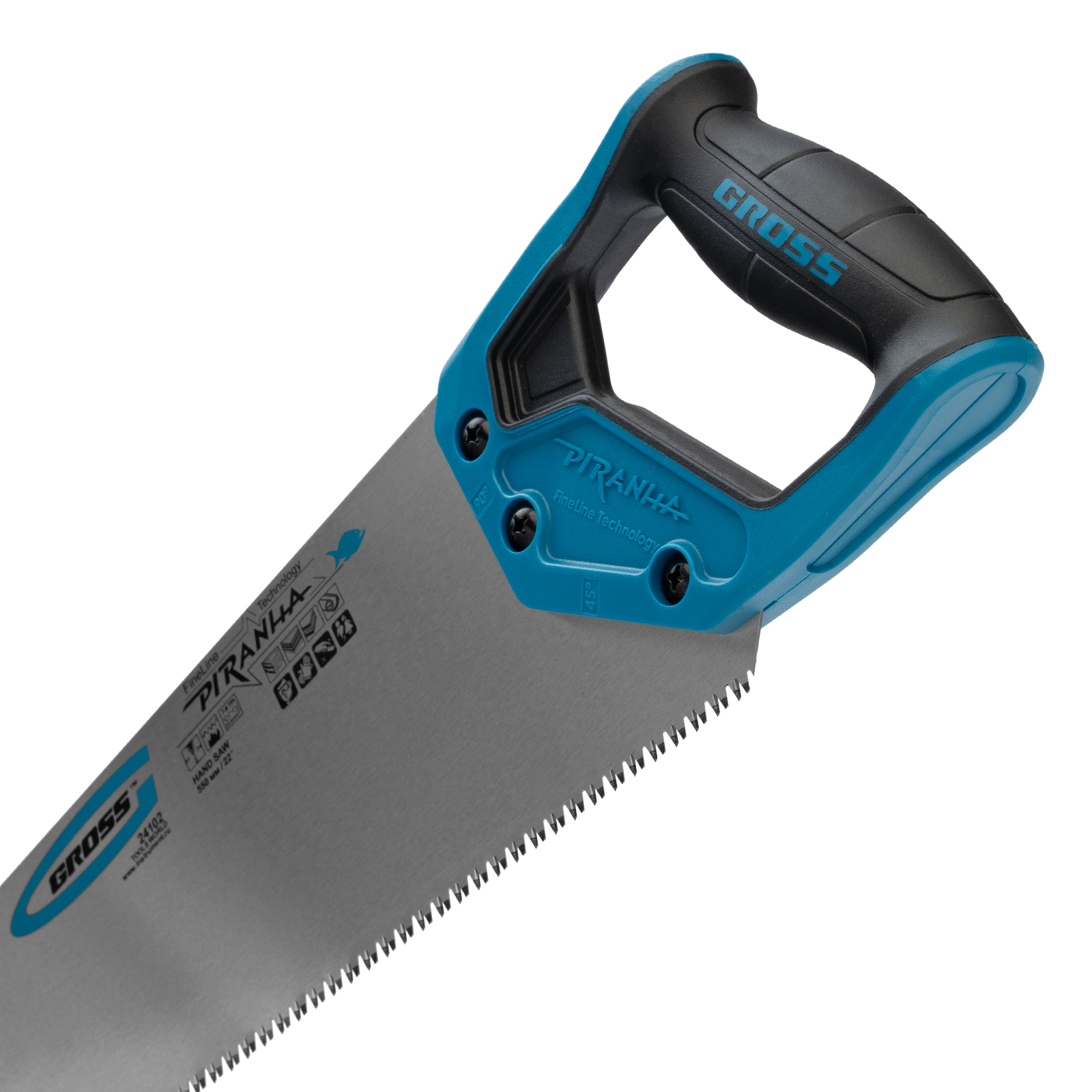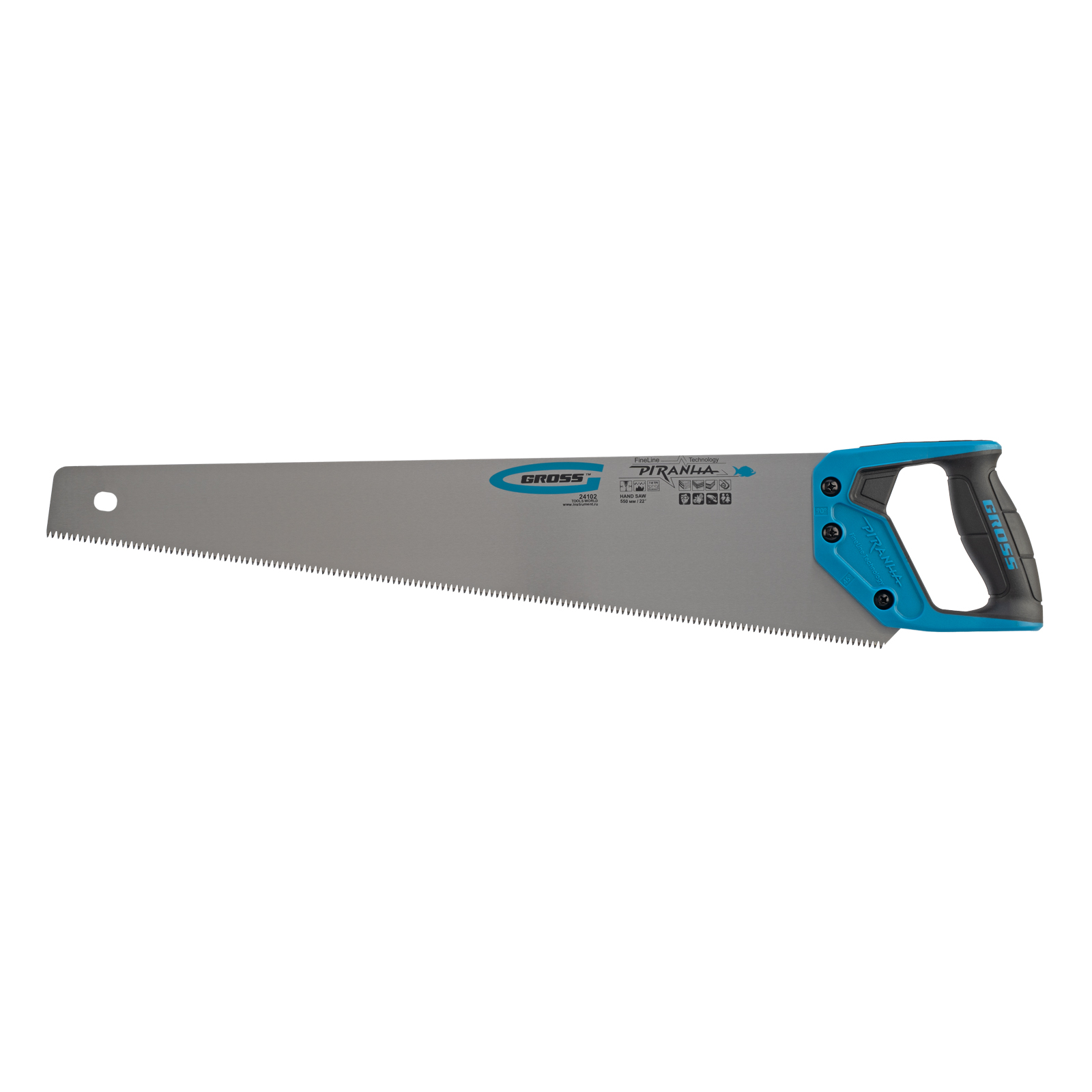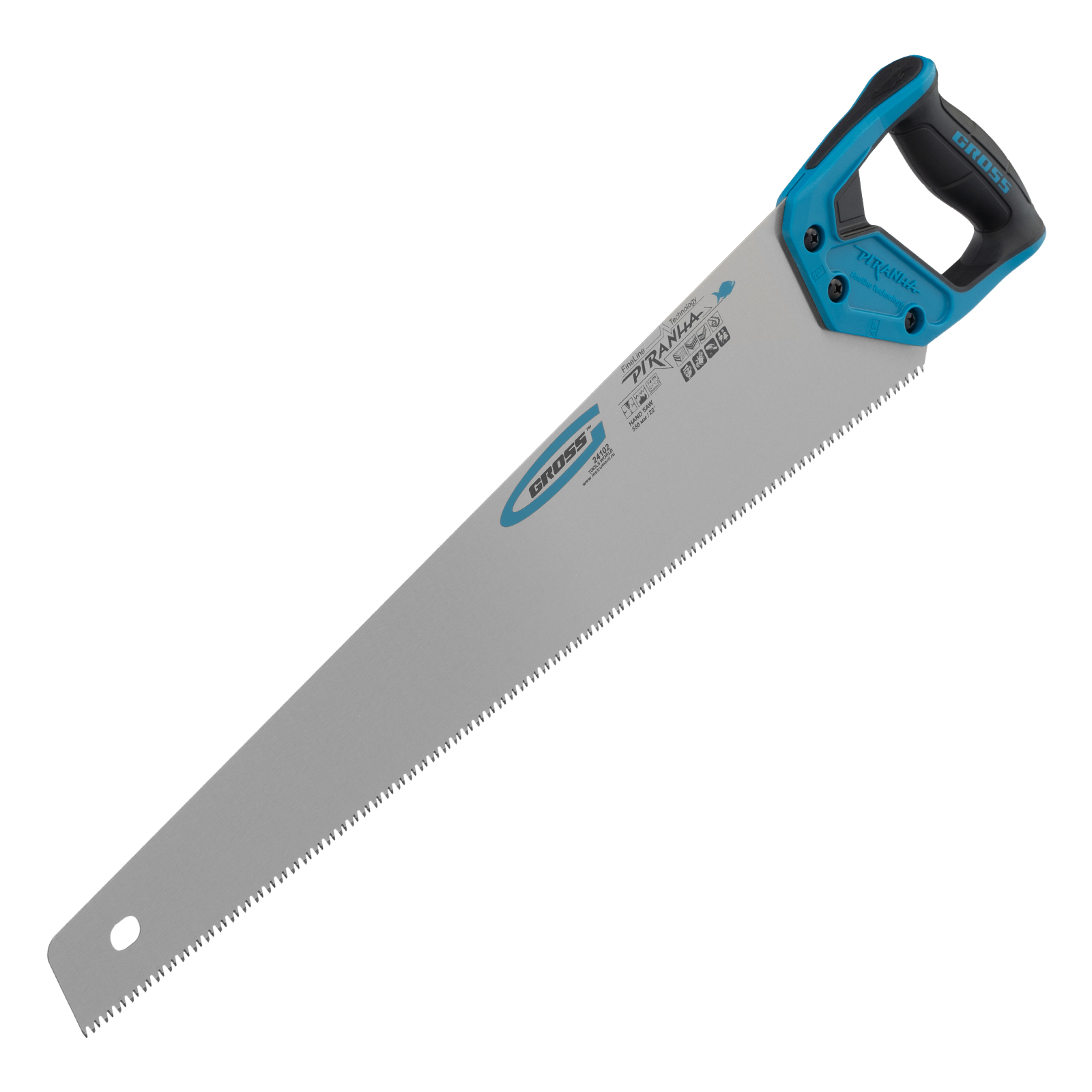 Ножовка по дереву Gross PIRANHA 24102 с полотном длиной 550 мм, калеными зубьями с 3D-заточкой и шагом 7-8 TPI, с 2-компонентной рукояткой, используется для распиливания древесины, МДФ, ДСП, ДВП, ламината, а также пенополистирола, полиуретана и других пластических материалов. Подходит для продольного и поперечного пиления. Зубья имеют универсальный шаг 7-8 TPI, поэтому ножовка подходит для решения широкого спектра задач. Трехгранная заточка зубьев обеспечивает максимальную производительность и высокое качество пиления. Ножовка предназначена для столярных и плотницких работ, пригодится во время ремонта и будет полезна в быту.