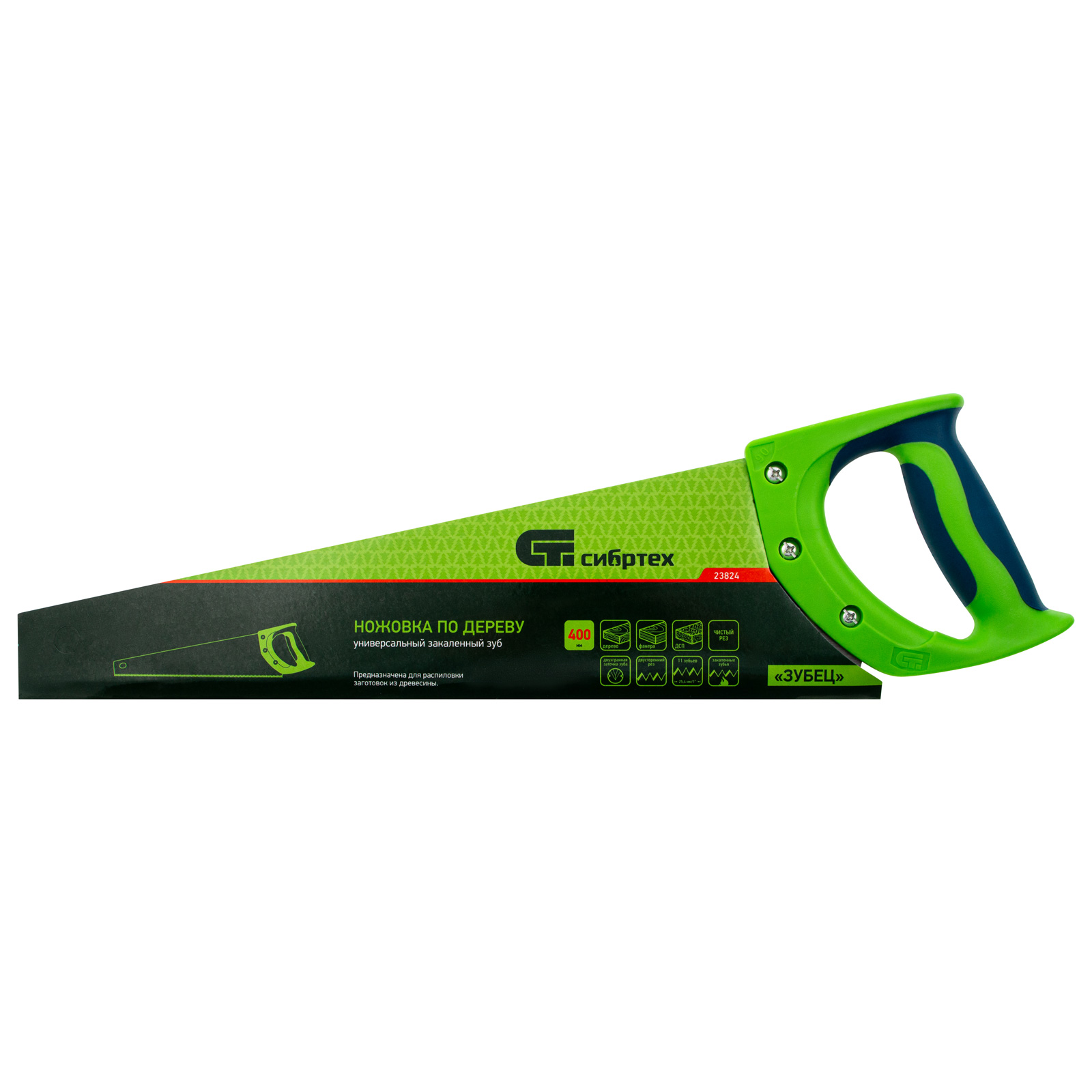 Ножовка по дереву Сибртех «Зубец» 23824 с полотном длиной 400 мм, калеными зубьями с 2D-заточкой и шагом 11 TPI, 2-компонентной рукояткой, используется для распиливания заготовок из древесины, фанеры и ДСП. Рабочая часть, содержащая 11 зубьев на дюйм, обеспечивает чистый двусторонний рез. Режущую кромку можно перетачивать. Ножовка будет полезна столярам, плотникам и домашним мастерам.
