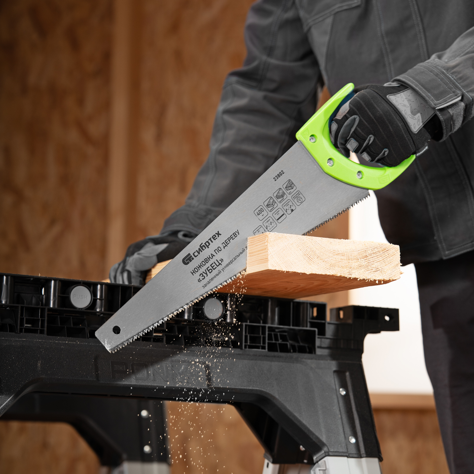 Ножовка по дереву "Зубец", 400 мм, 7-8 TPI, каленый зуб 2D, двухкомпонентная рукоятка Сибртех в Уфе